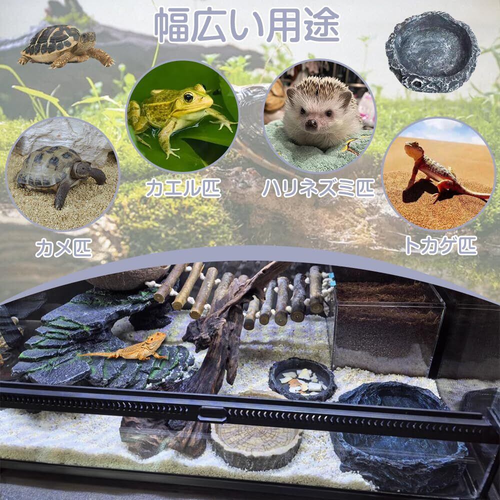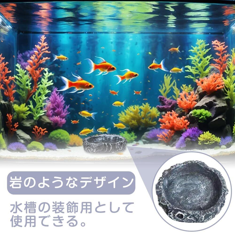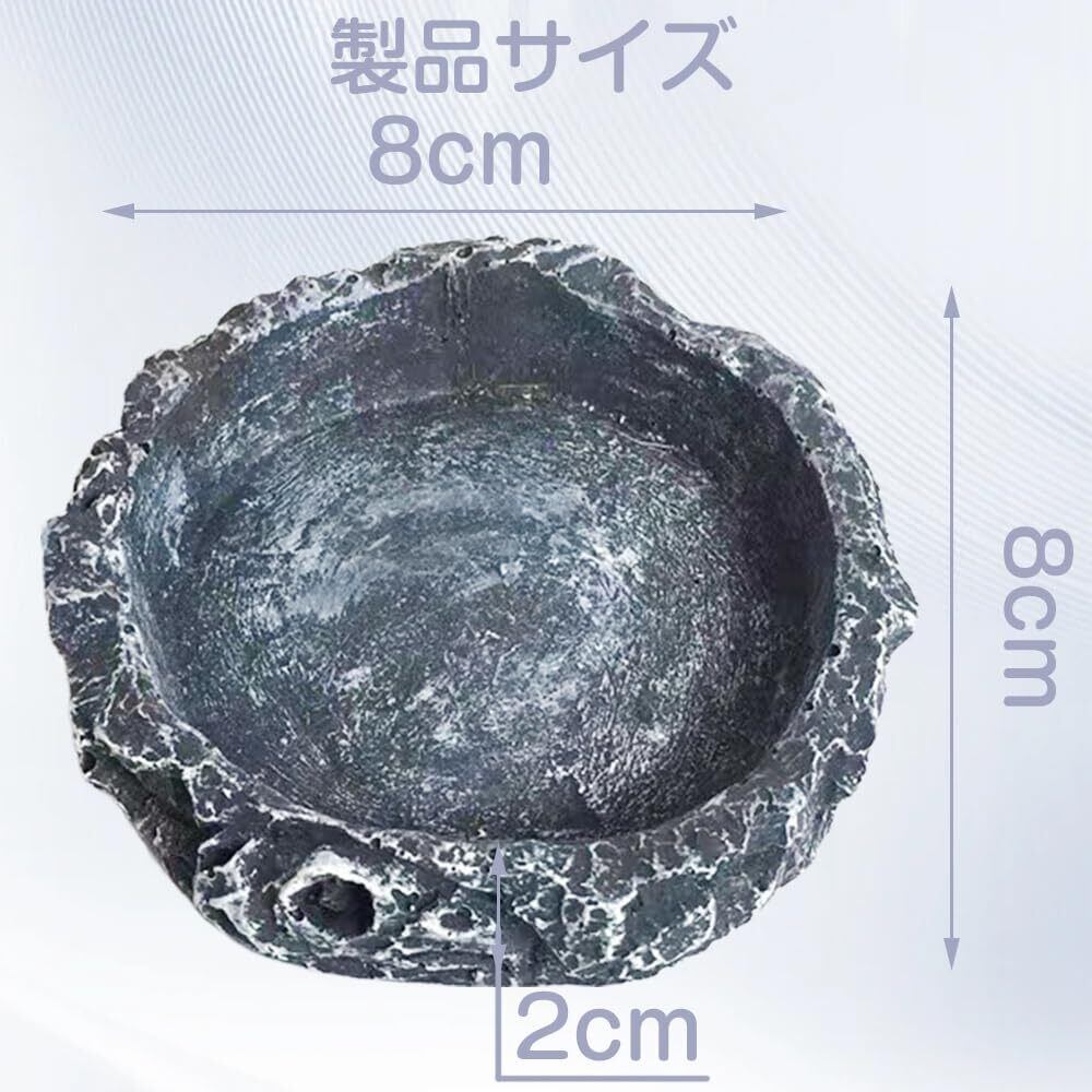 爬虫類の水皿のペット餌皿の餌ボール餌皿の自然な岩のイメージのペット餌セットカメのトカゲのカエルのハリネズミのヘビの爬虫類の避難所8*8*2cm灰色