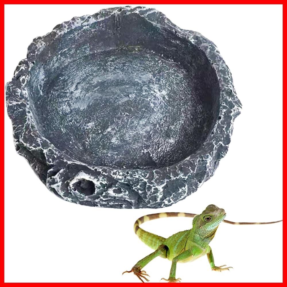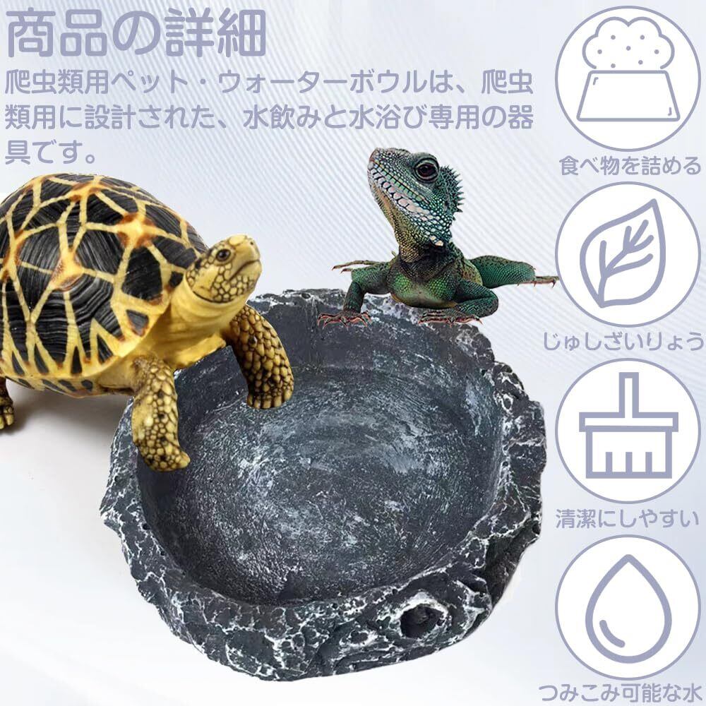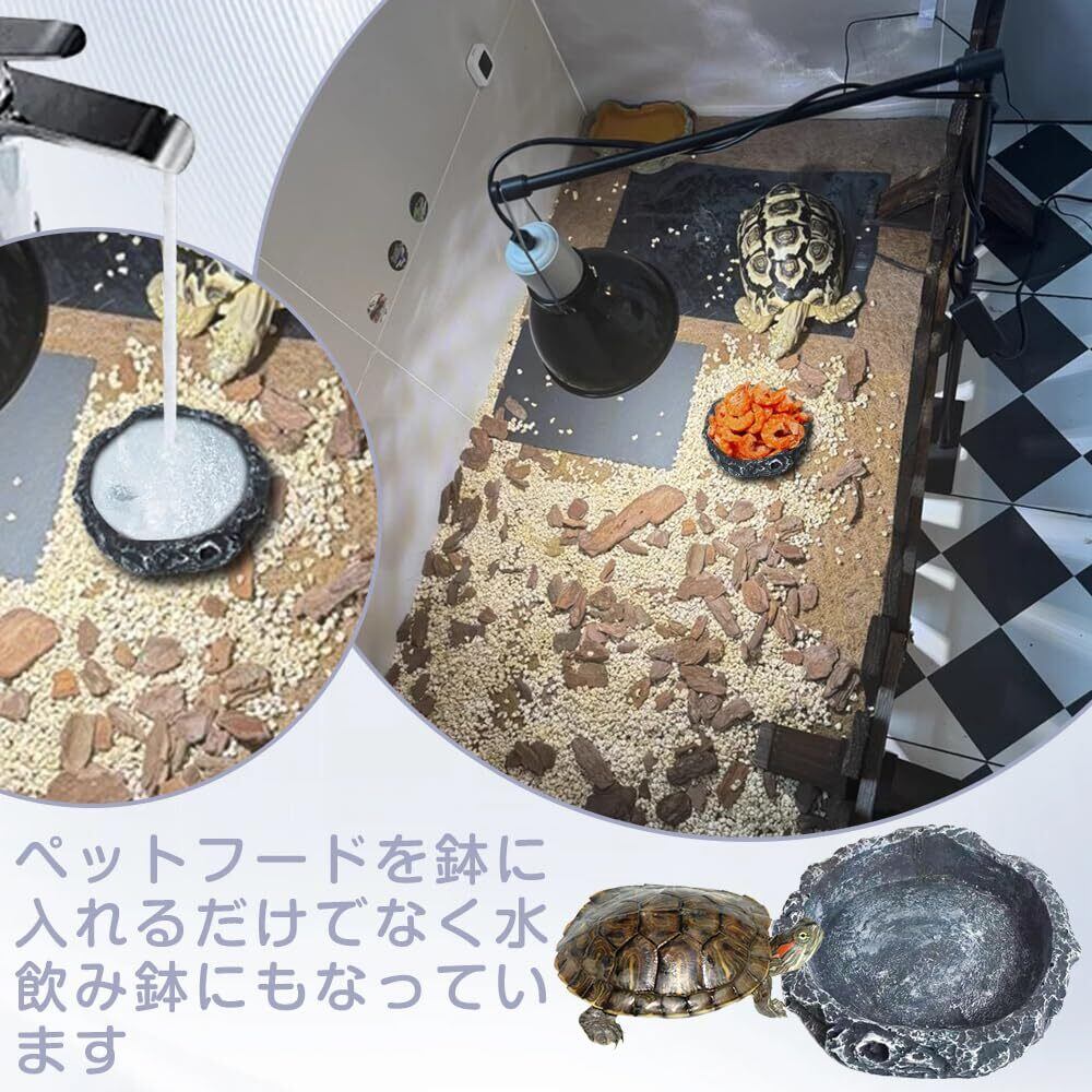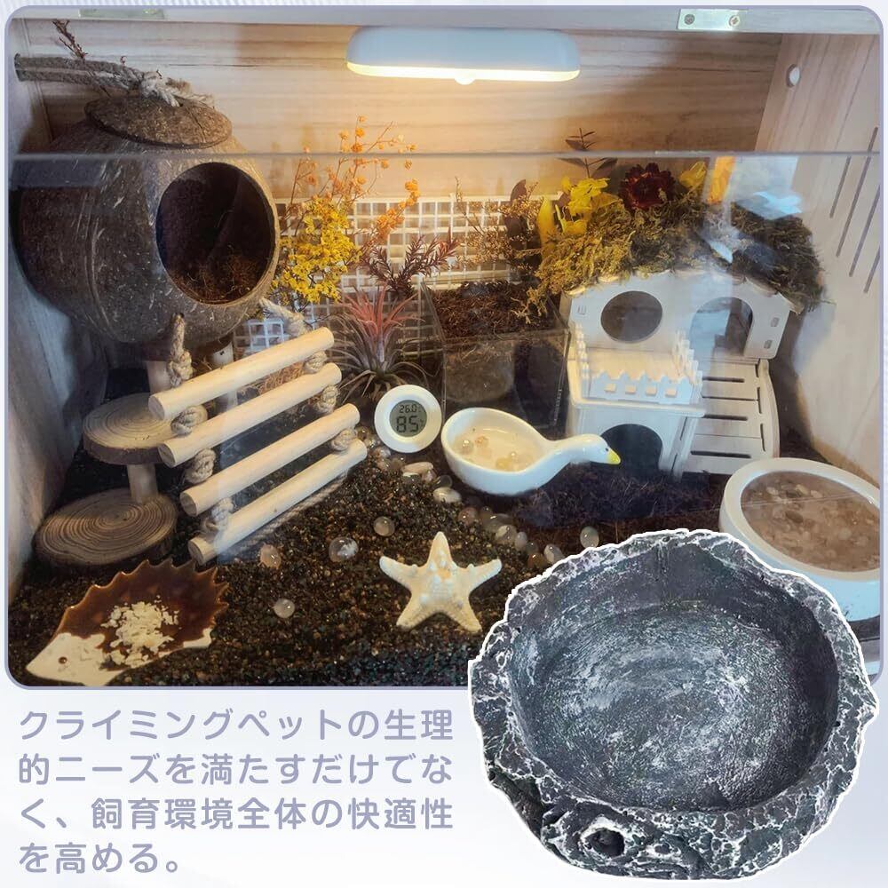 爬虫類の水皿のペット餌皿の餌ボール餌皿の自然な岩のイメージのペット餌セットカメのトカゲのカエルのハリネズミのヘビの爬虫類の避難所8*8*2cm灰色