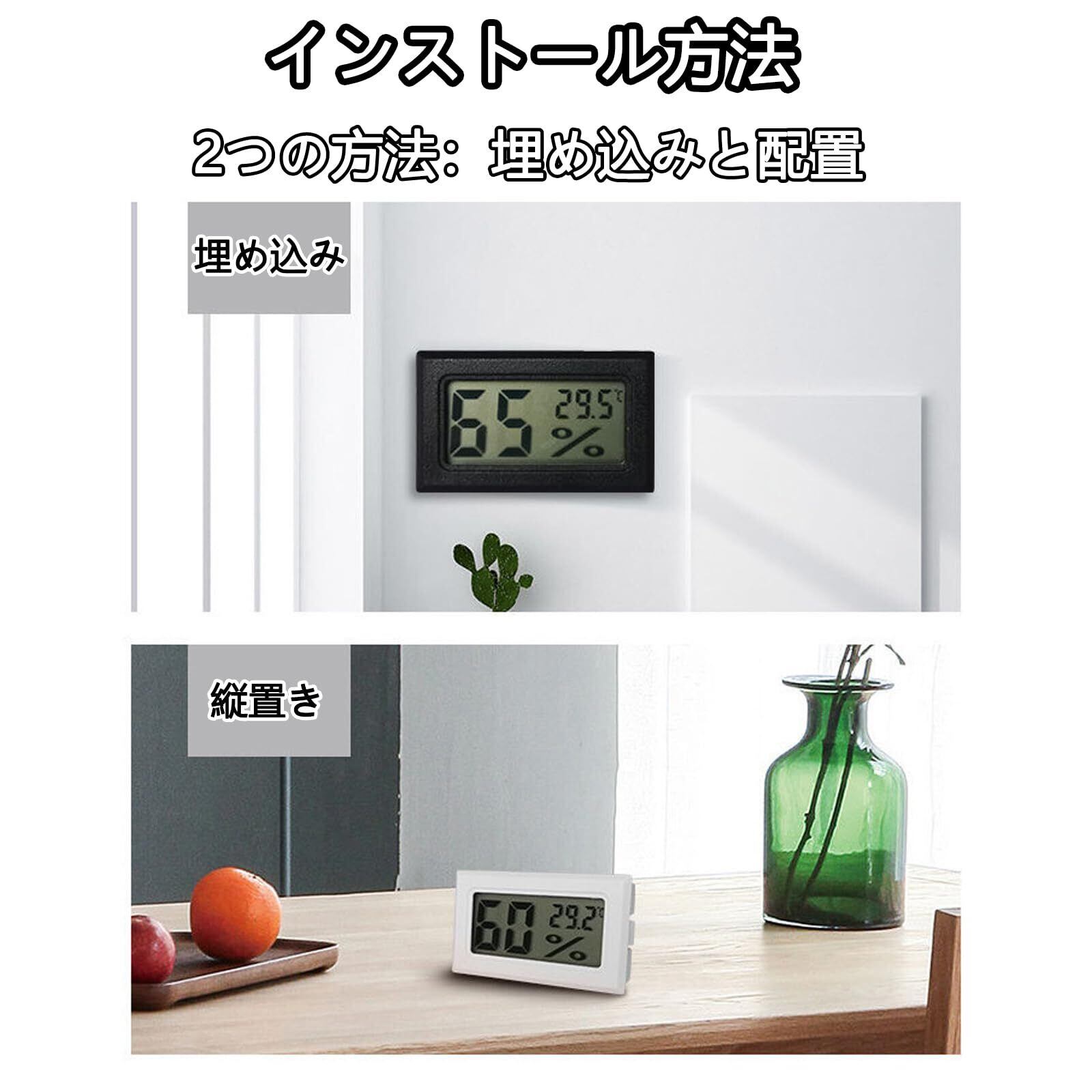 デジタル温湿度計 LCD 温度計 センサー内蔵 環境チェッカー 小型 室内用 オフィス 家庭 花屋 爬虫類テラリウム クローゼット 冷蔵庫 水族館 栽培用 温湿度計 2個セット (ブラック 2個)