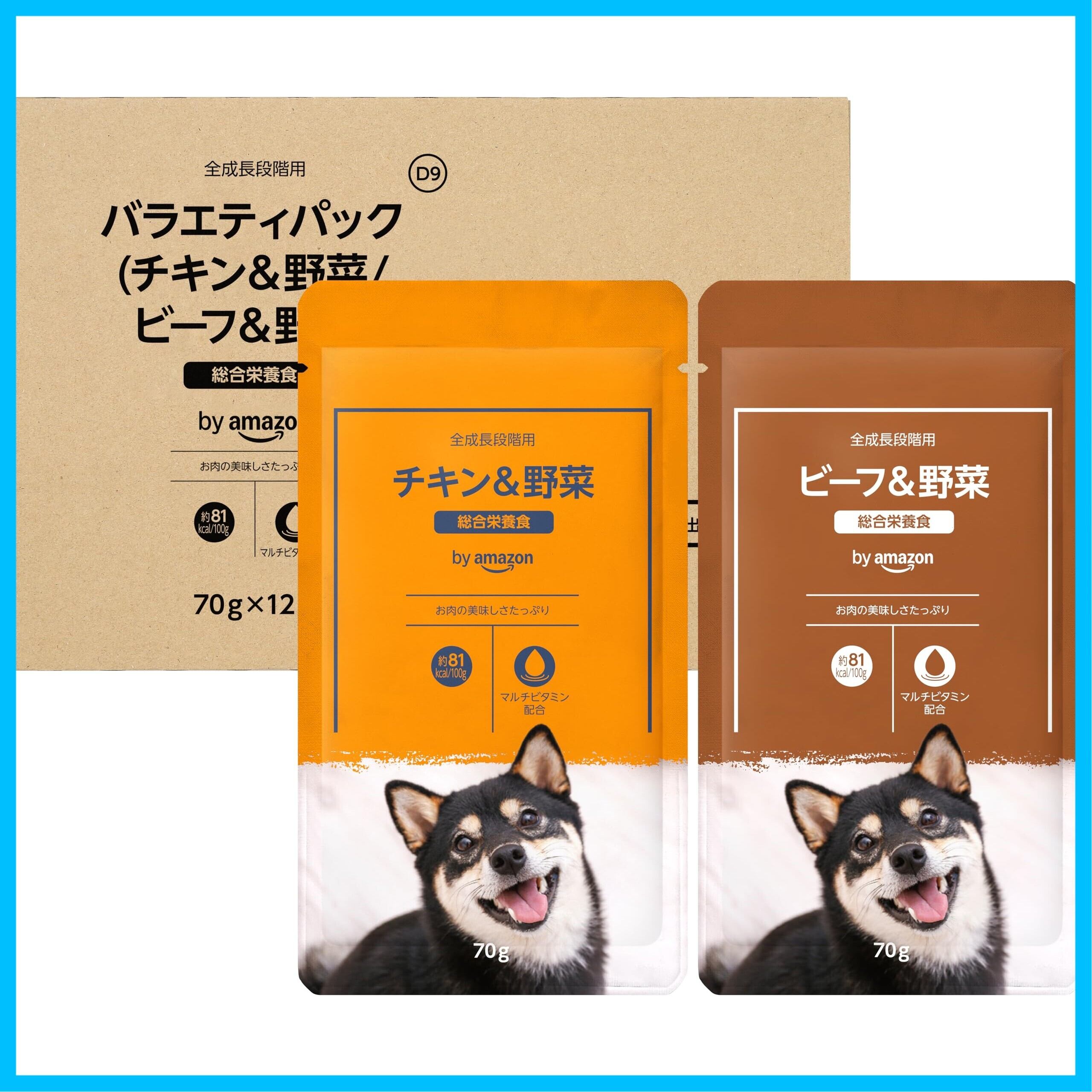 by Amazon 犬用ウェットフード 総合栄養食 バラエティパック (チキン&野菜・ビーフ&野菜) 70g×12P(各6P)