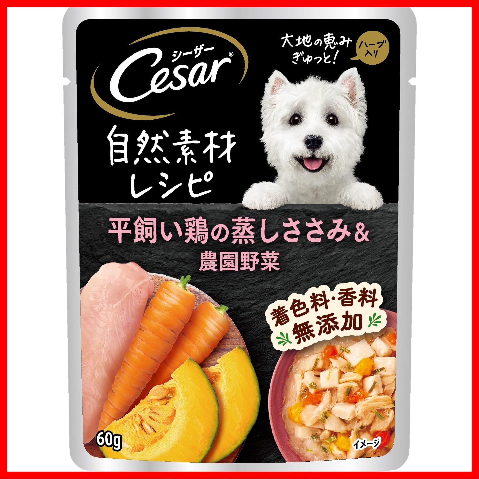 シーザー 自然素材レシピ 平飼い鶏の蒸しささみ&農園野菜 60g×16袋(まとめ買い) ドッグフード 無添加