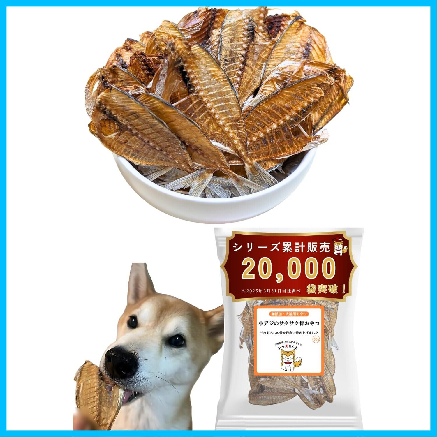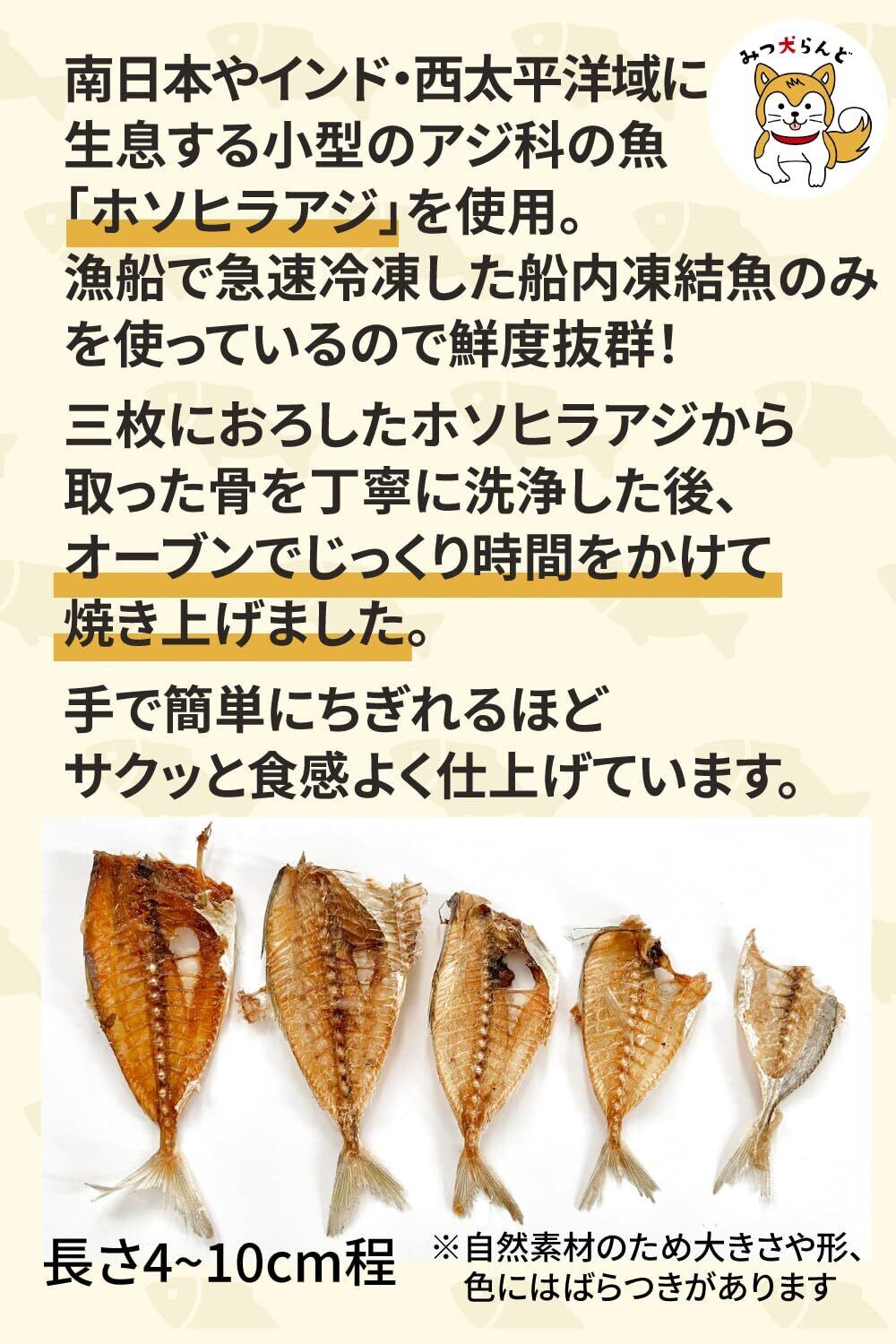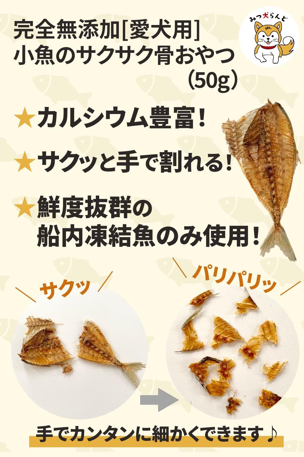 【初トライ応援/賞味期限保証あり】みつ犬らんど 小アジのサクサク骨おやつ 犬猫用 無添加 小型/中型/大型犬 子犬 シニア 50g