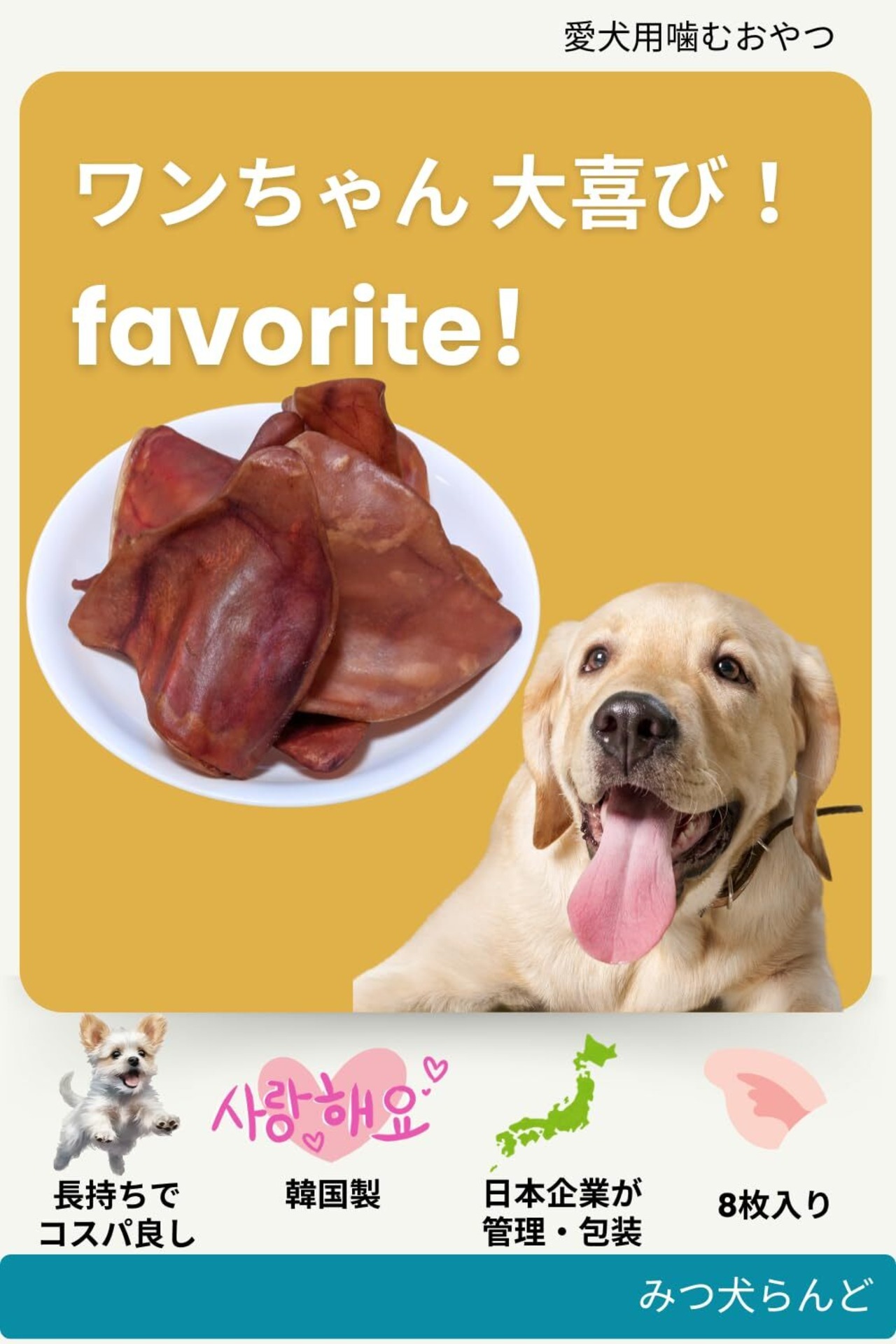 【初トライ応援/賞味期限保証あり】みつ犬らんど 豚の耳 犬 おやつ 乾燥 豚耳 (姿(8枚入り))