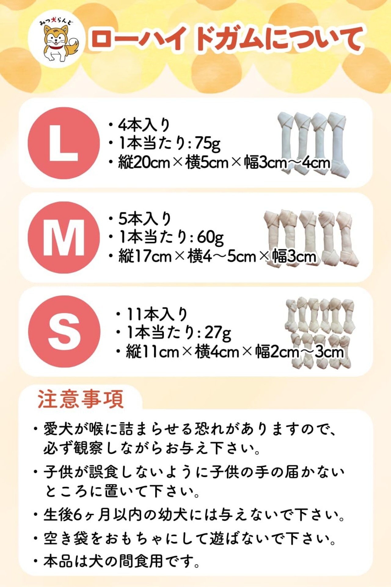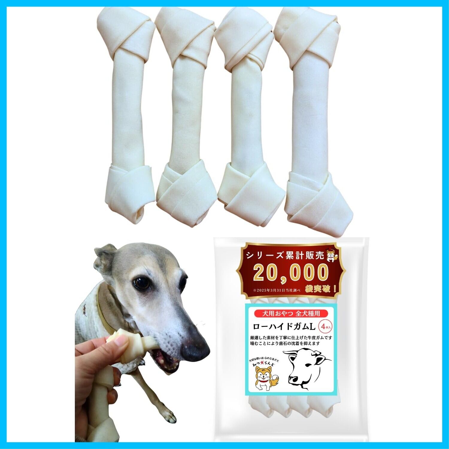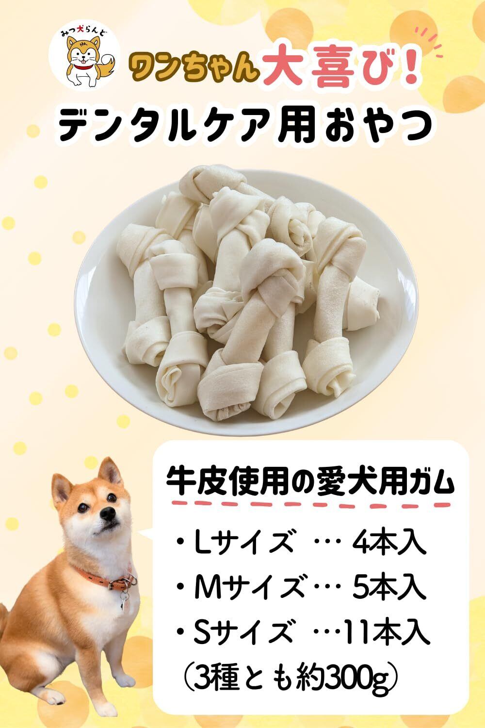 【初トライ応援/賞味期限保証あり】みつ犬らんど 牛皮ガム 犬 歯磨き用ガム 噛むおやつ ローハイドガム おやつ (Lサイズ・4本)