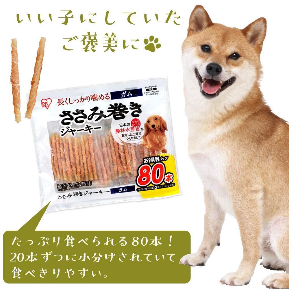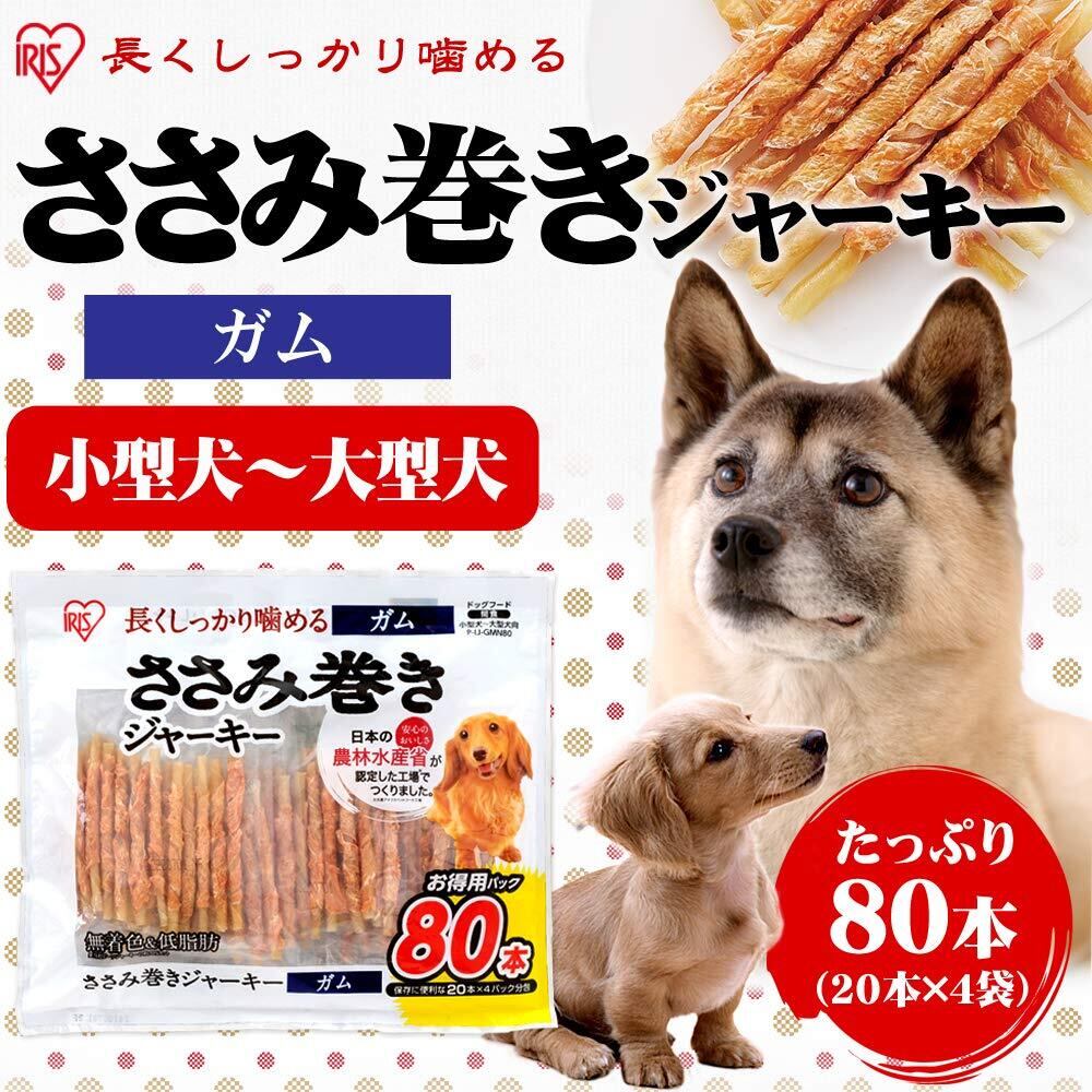 アイリスオーヤマ 犬用おやつ ささみ巻きジャーキーガム 80本 P-IJ-GMN80 (農林水産省認定) チキン 20個 (x 4)