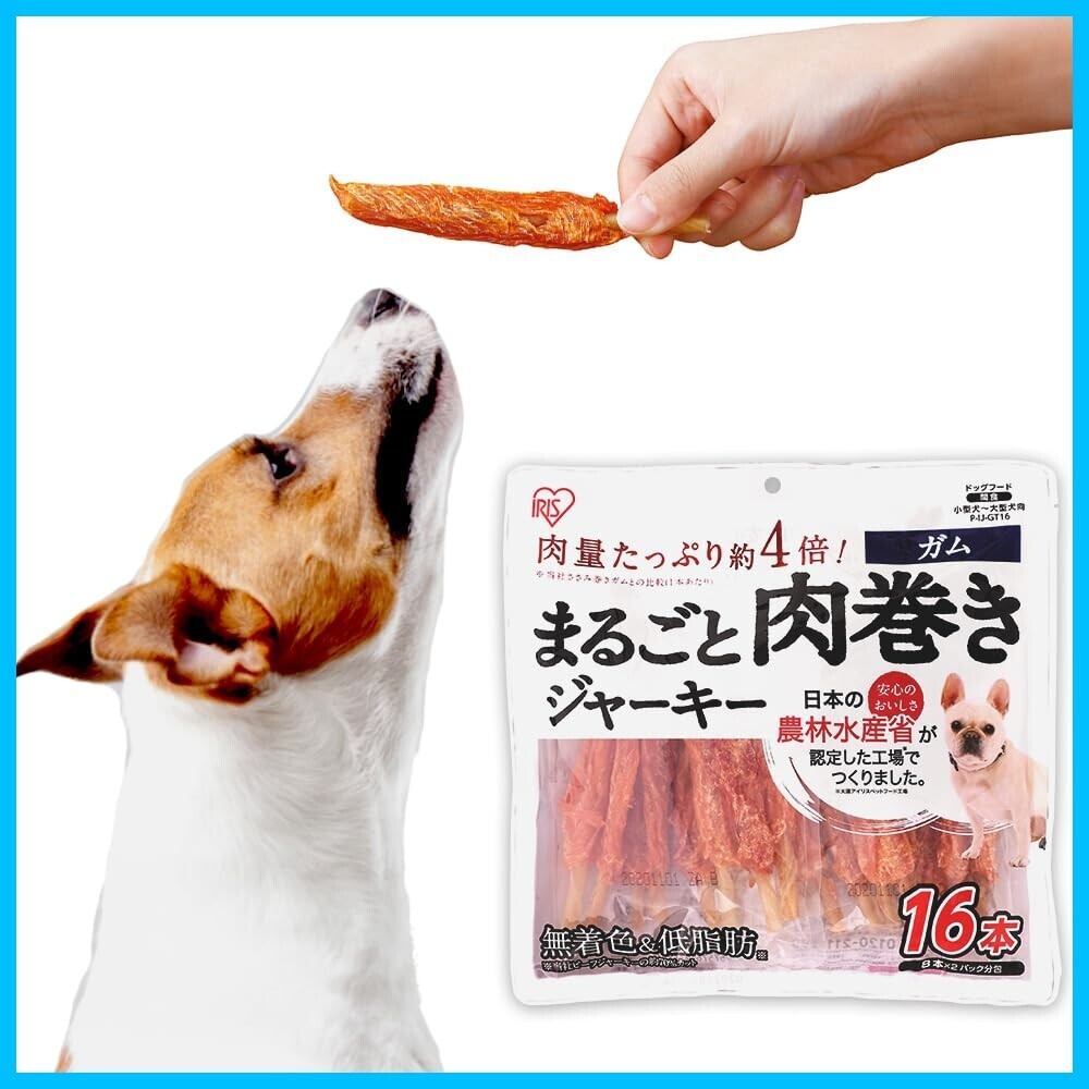アイリスオーヤマ 犬用おやつ まるごと肉巻きジャーキーガム 16本 (農林水産省認定) チキン 16個 (x 1)