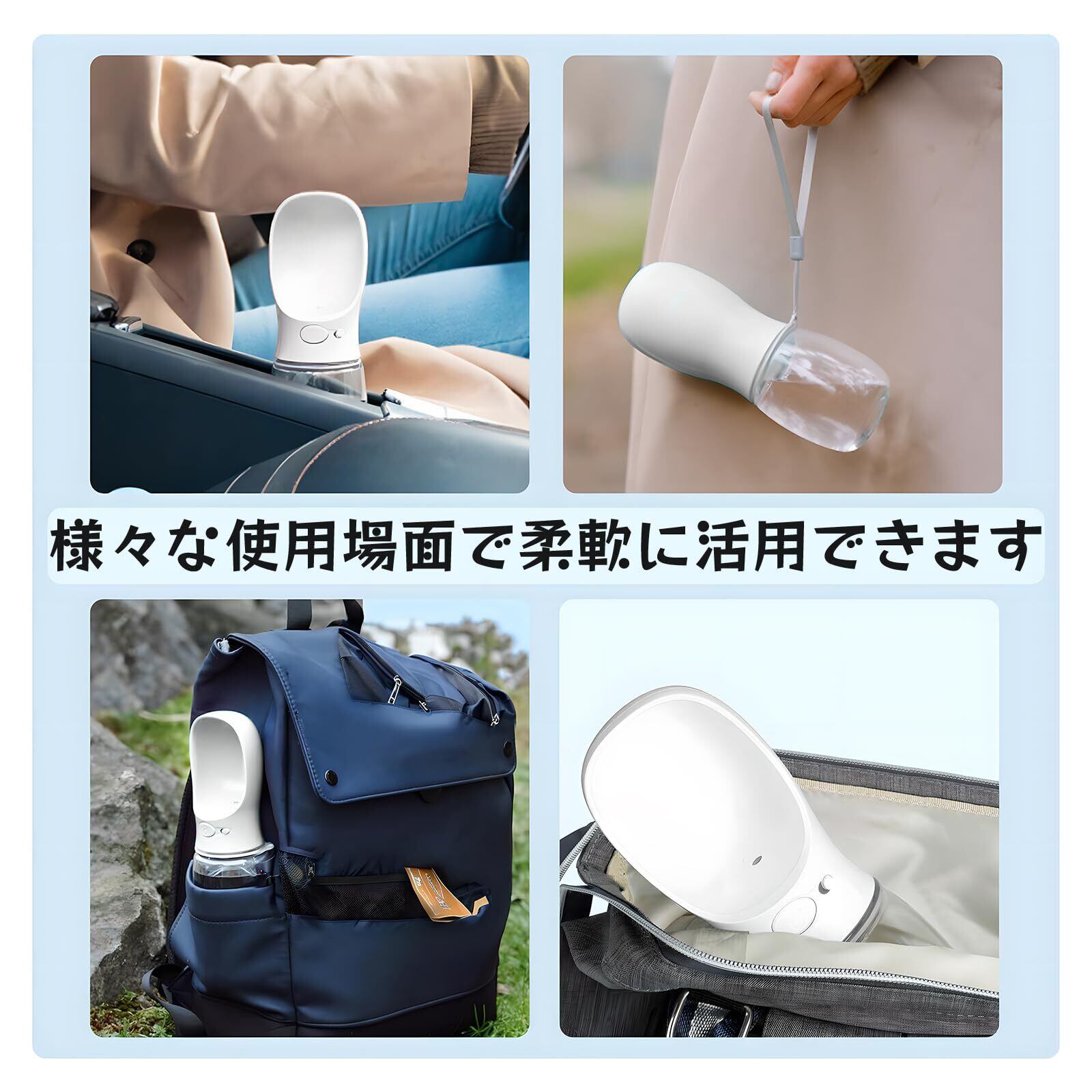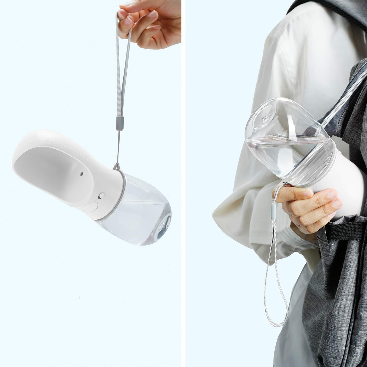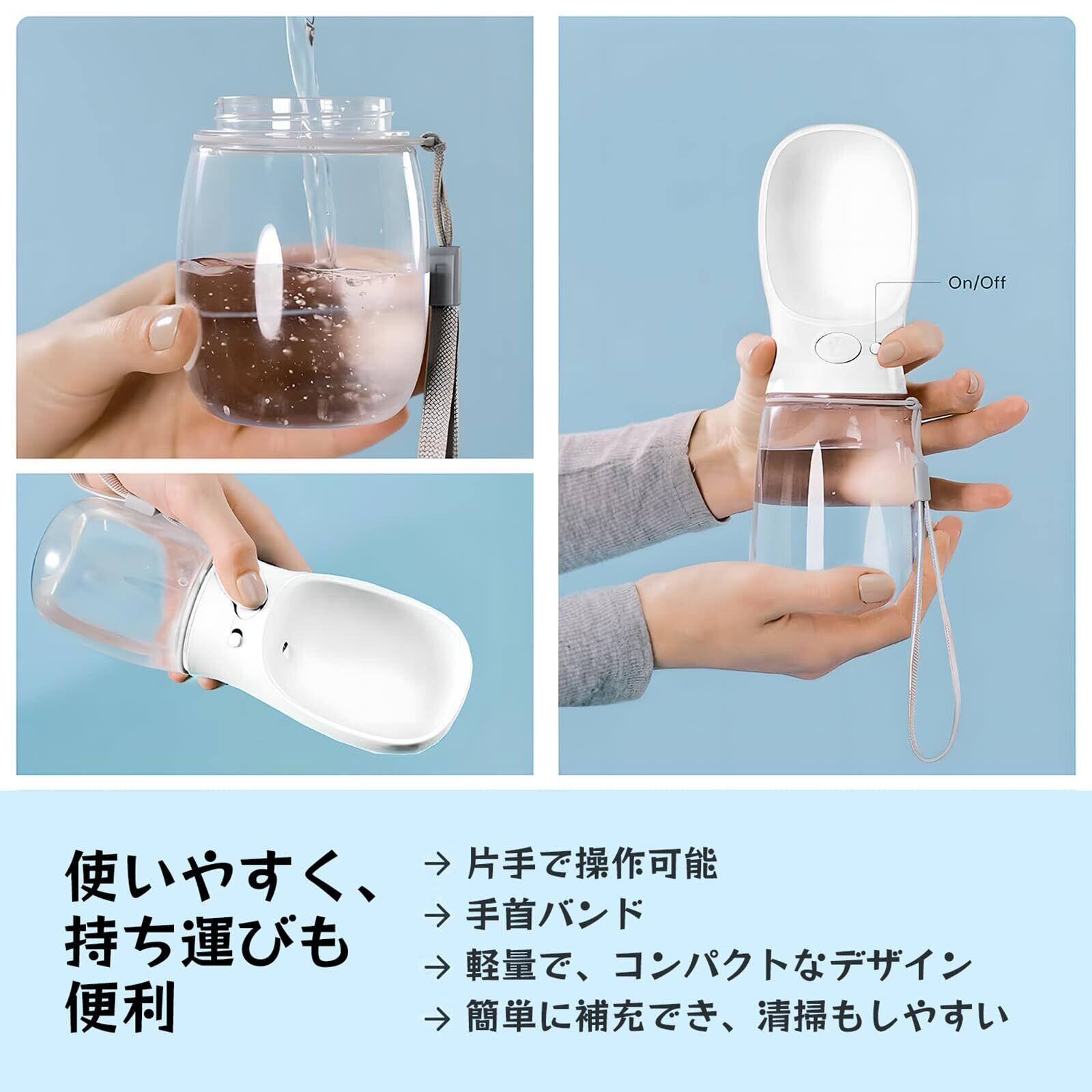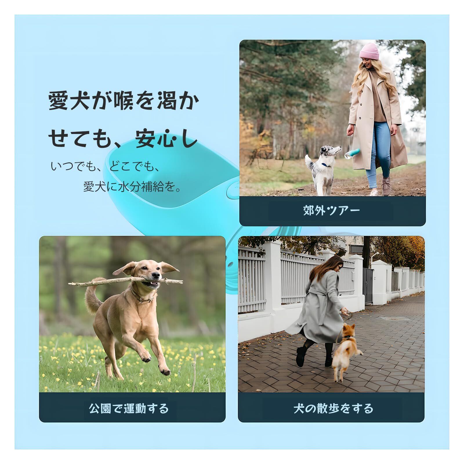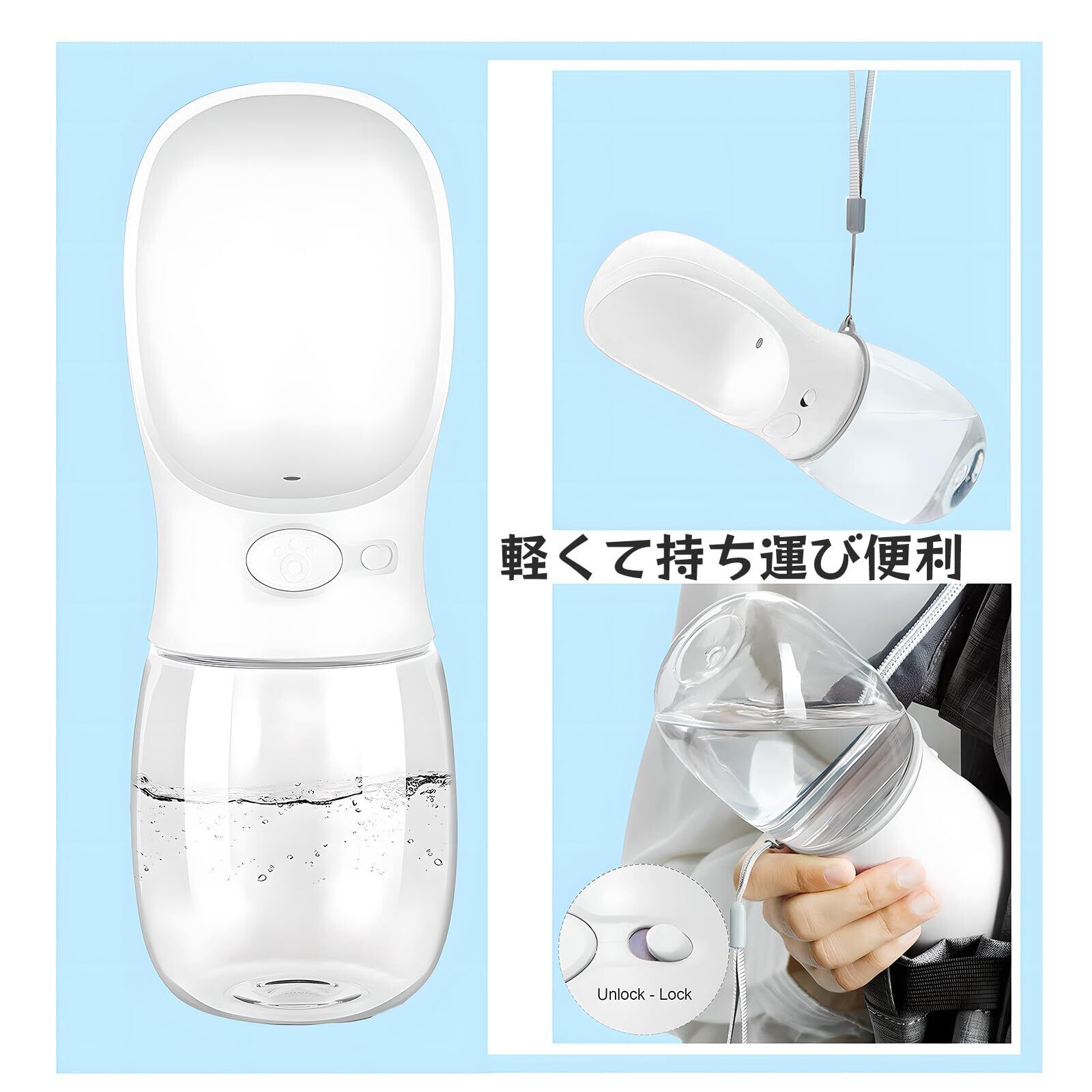 ️ポータブルドッグウォーターボトル:屋外ウォーキング、ハイキング、旅行には十分な350ML容量。 コンパクトなサイズは、あなたがそれをあなたのバッグに容易に入れることができることを確かめるか、または付属のストラップであなたの手の上に便利に持っていくことができるようにします。