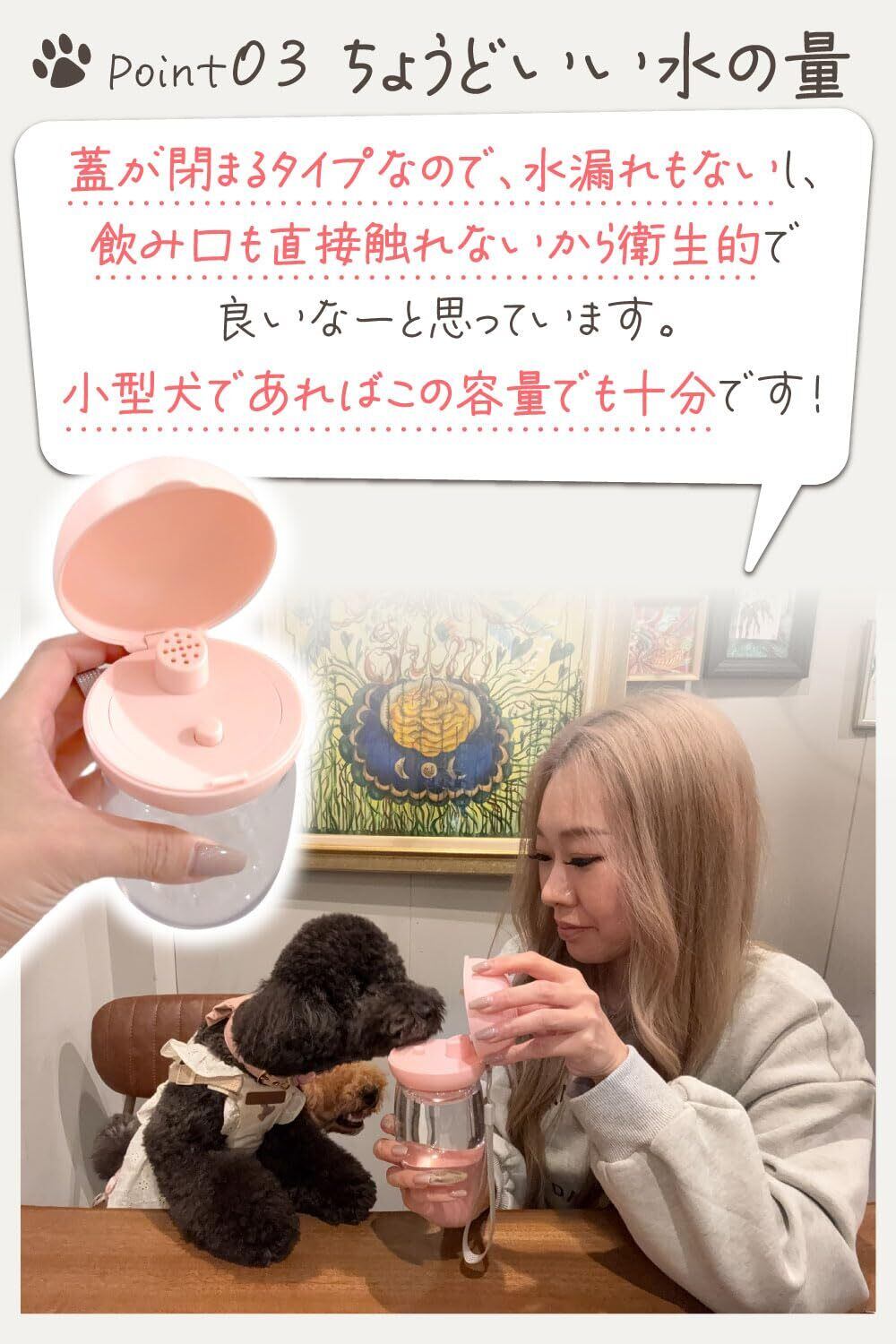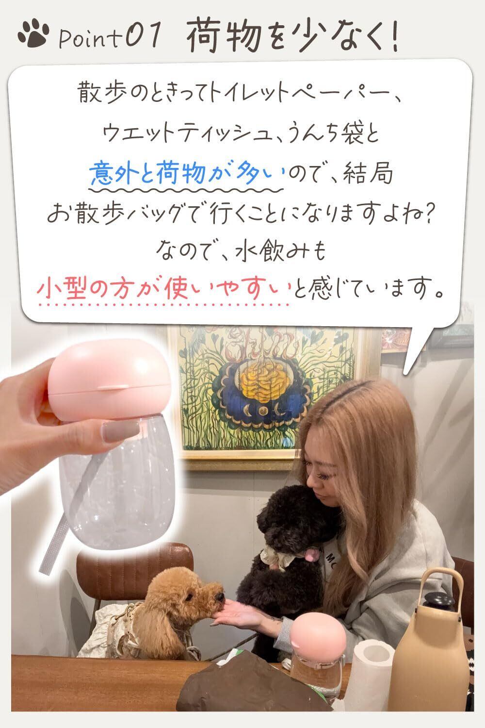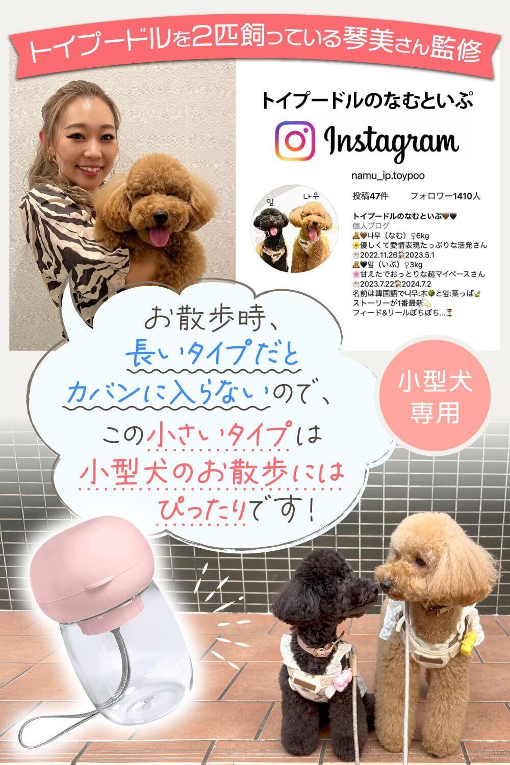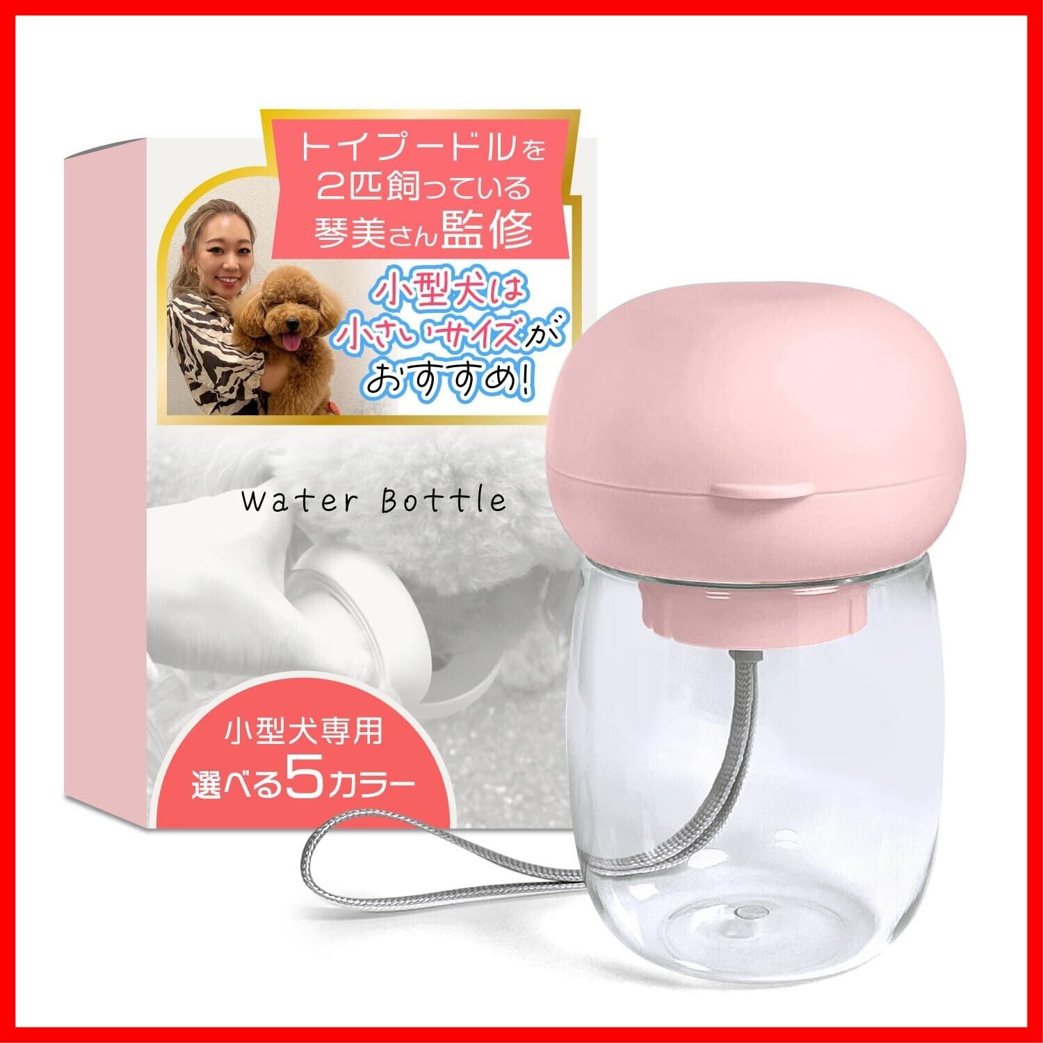 わんこ お散歩用 ウォーターボトル (小型犬専用) 【トイプー2匹の愛犬家監修!】ワンタッチで給水可能xコンパクトでお散歩バッグに入るサイズ (ペールピンク 300ml)