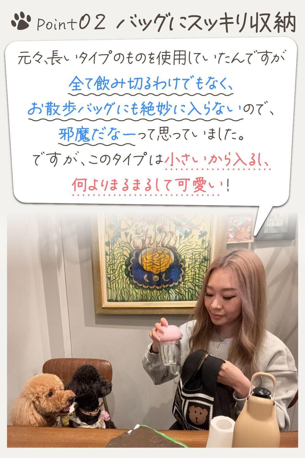 小型犬専用でお散歩バッグに入れてもスッキリする容量300mlの小さいタイプです