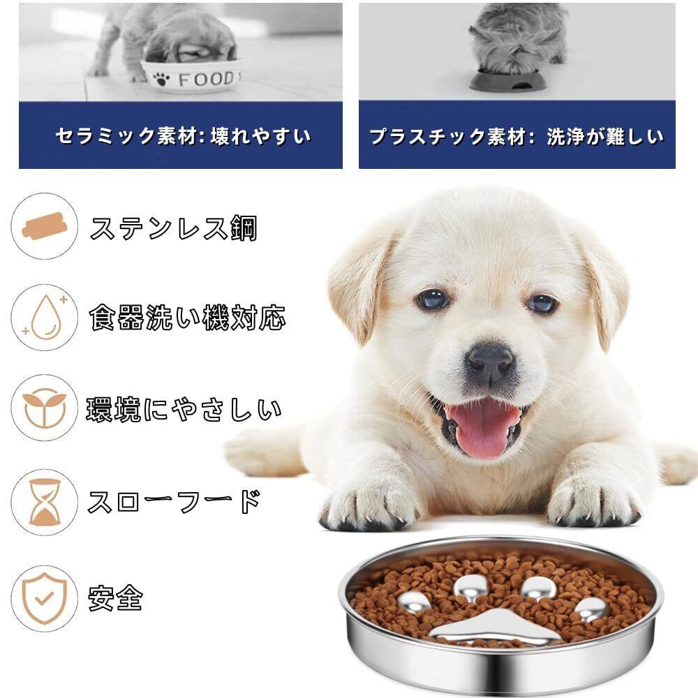 ペットボウル 早食い防止 食器 スローフードボウル フードボウル ステンレス製 洗いやすい 犬のスローフード丼 餌皿 スローフィーダー えさ皿 ゆっくり食べる 犬 猫 ペット用 シリコン底 (22cm)