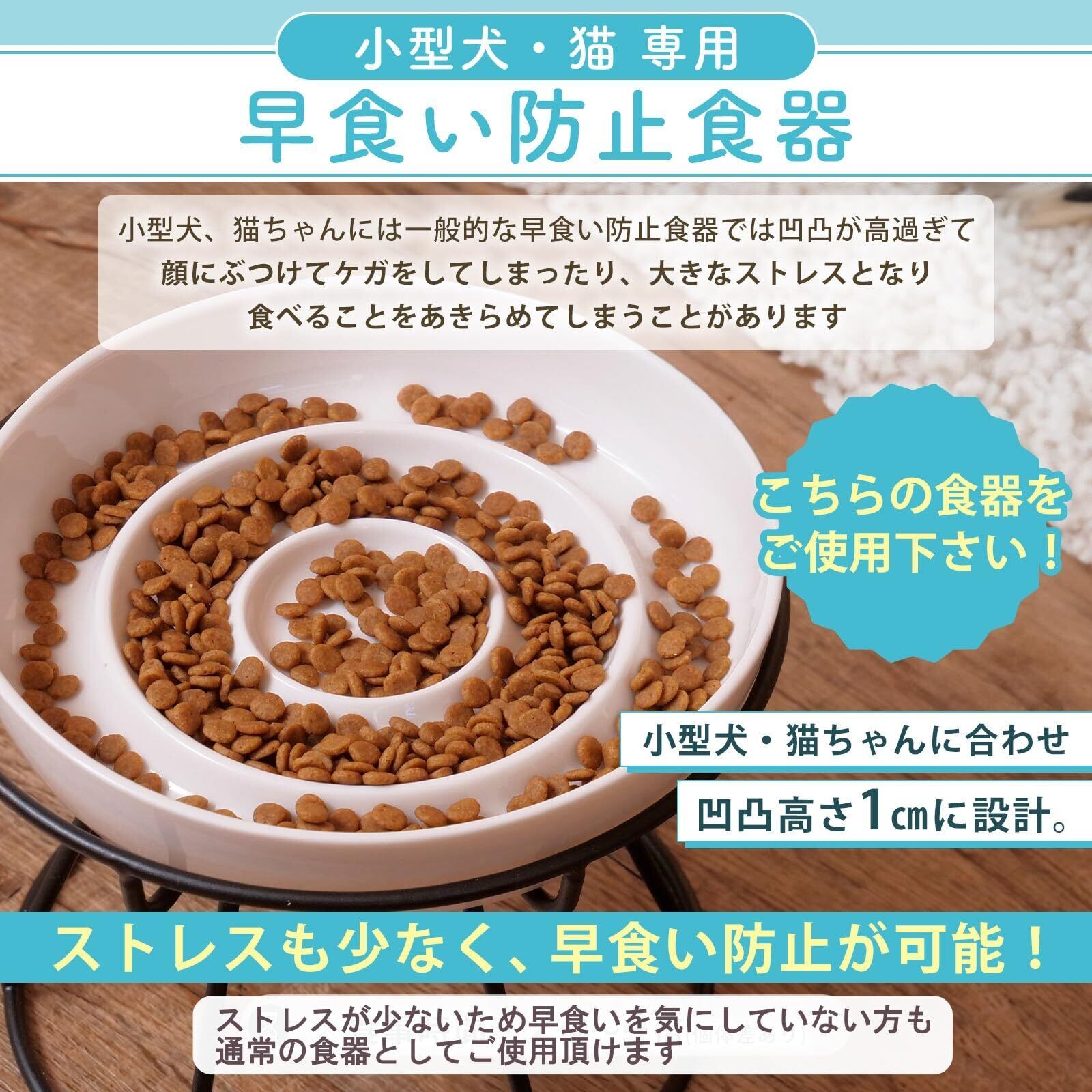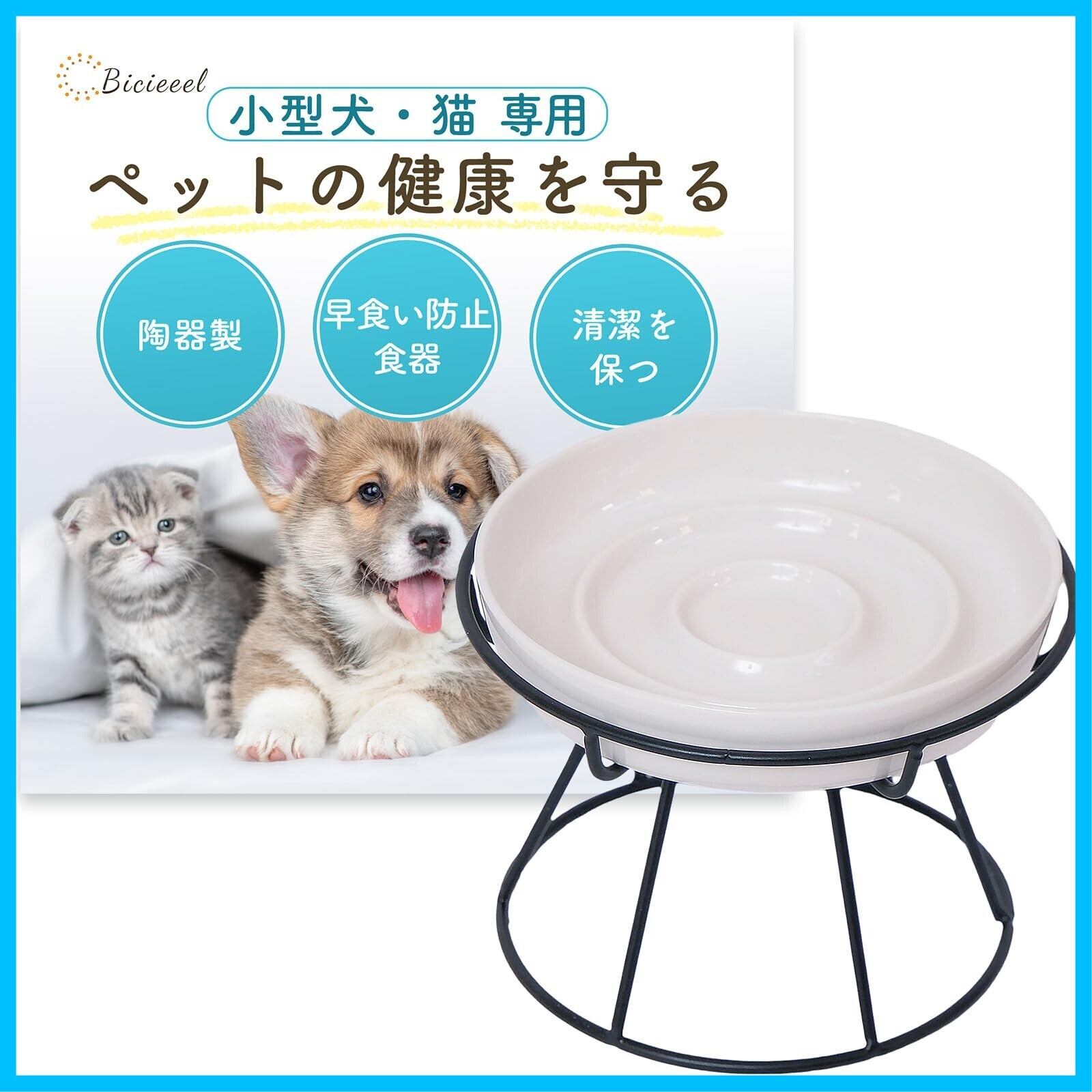 [雑誌掲載モデル]Bicieeel 小型犬 猫 専用 ペットにやさしい 早食い防止 食器 陶器 セラミック 高さ 分割 皿 お手入れ簡単 清潔 餌入れ フードボール 犬 猫 ペット スローフィーダー