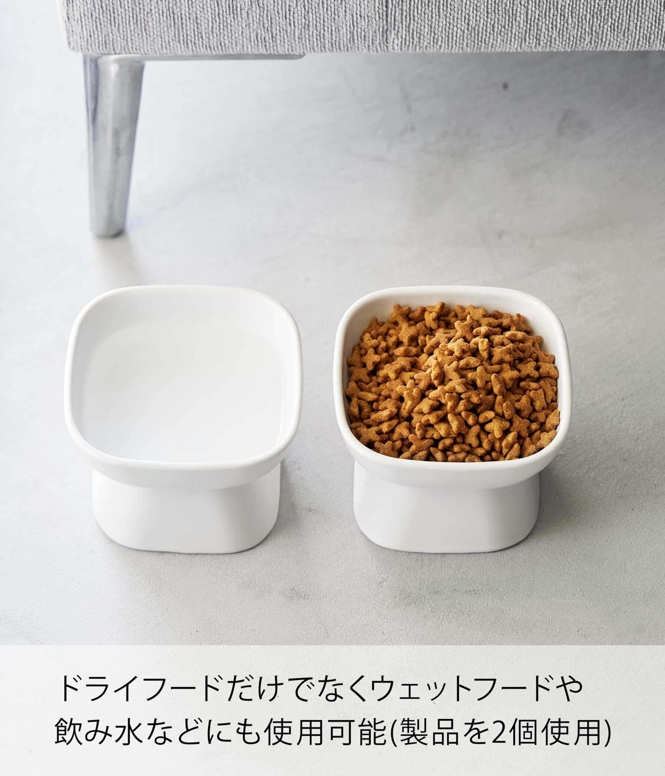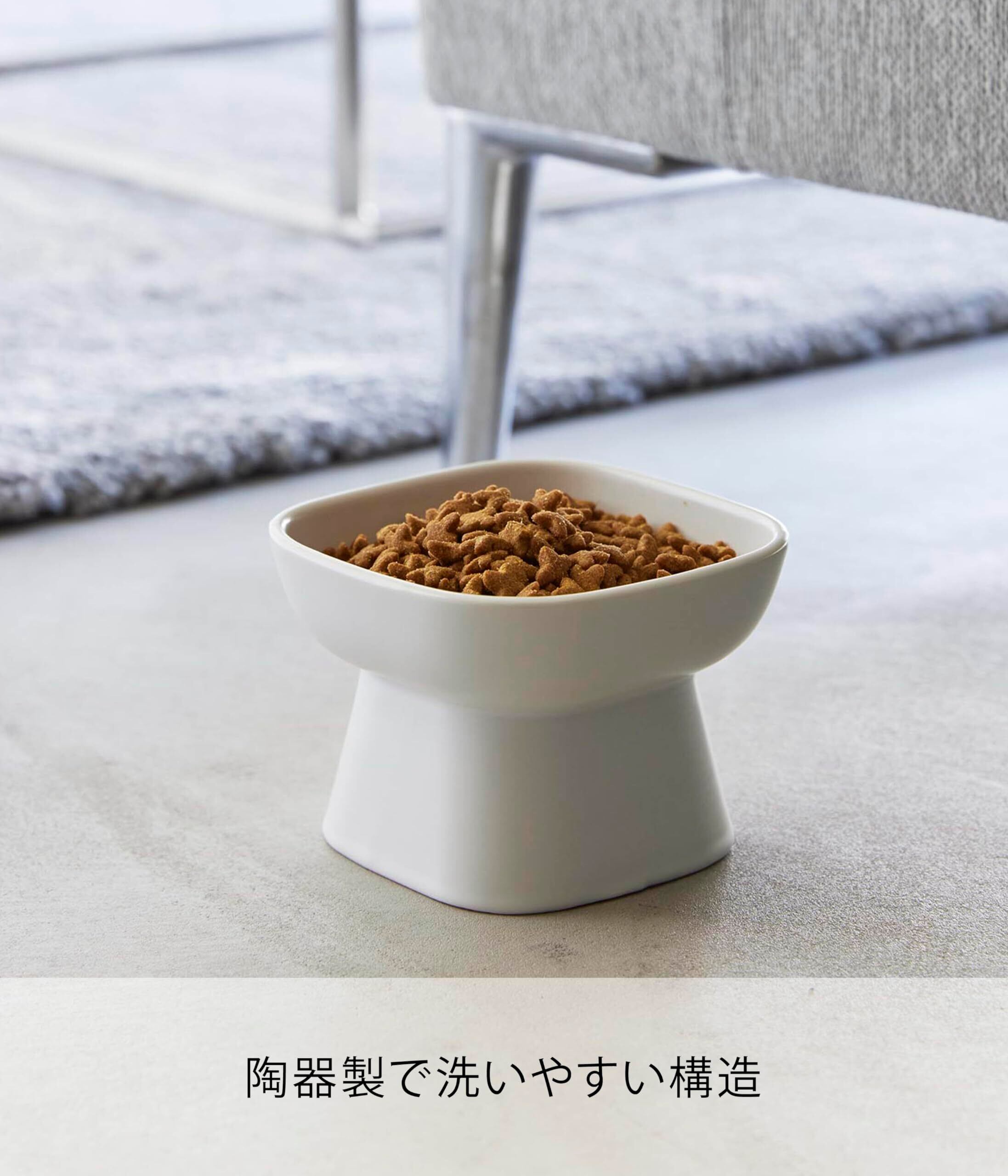 山崎実業(Yamazaki) 食べやすい高さ 陶器 ペットフードボウル ホワイト 約W11×D11×H8cm タワー tower エサ入れ 水入れ 食洗機対応 電子レンジ対応 1779