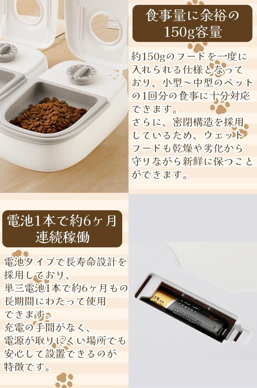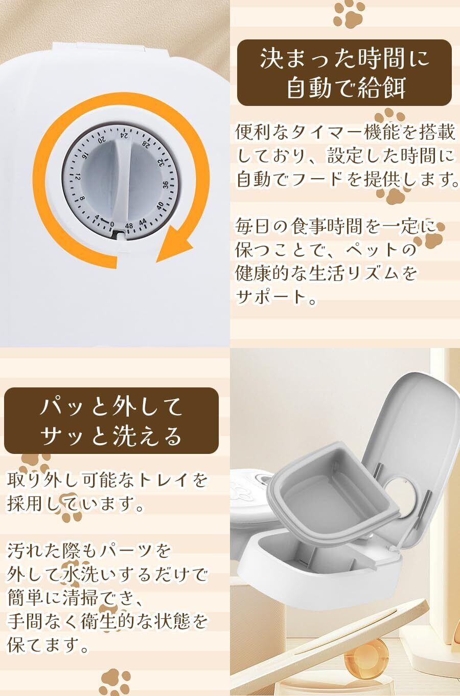 【便利なタイマー機能】設定した時間に自動的に給餌するので、飼い主が不在でも安心です。