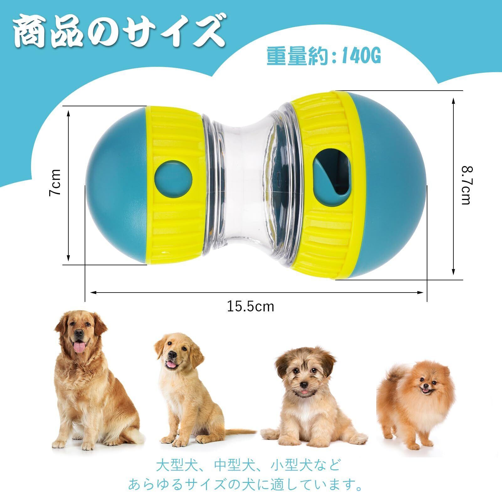 【早食い防止おもちゃ】転がしやすく、餌の出る量をコントロールでき、ペットの食べる速度を効果的に遅くし、給餌穴のサイズを調整することで、犬がゆっくり食べるように促し、消化不良、嘔吐、膨満感を防ぎます。飲み込むことによって引き起こされます。