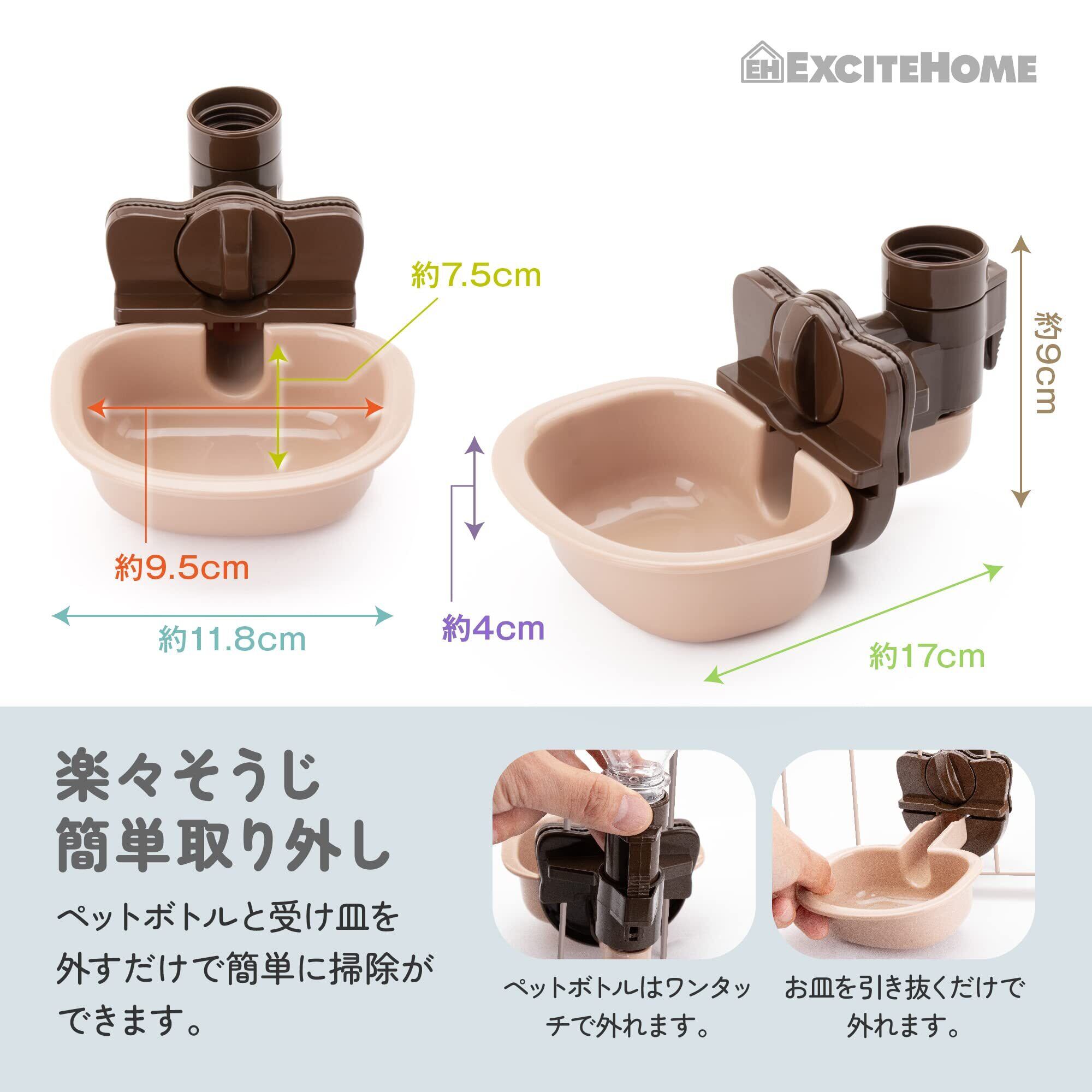 EXCITEHOME ペット 水飲み器 犬 猫 水飲み 食器セット ケージにつけるタイプ 高さ調整可能 ペットボトル 対応 自動 給水 給水器 ウォーターボトル お掃除簡単 衛生的 留守番 対策 3色展開 取扱説明書付き (ブラウン)