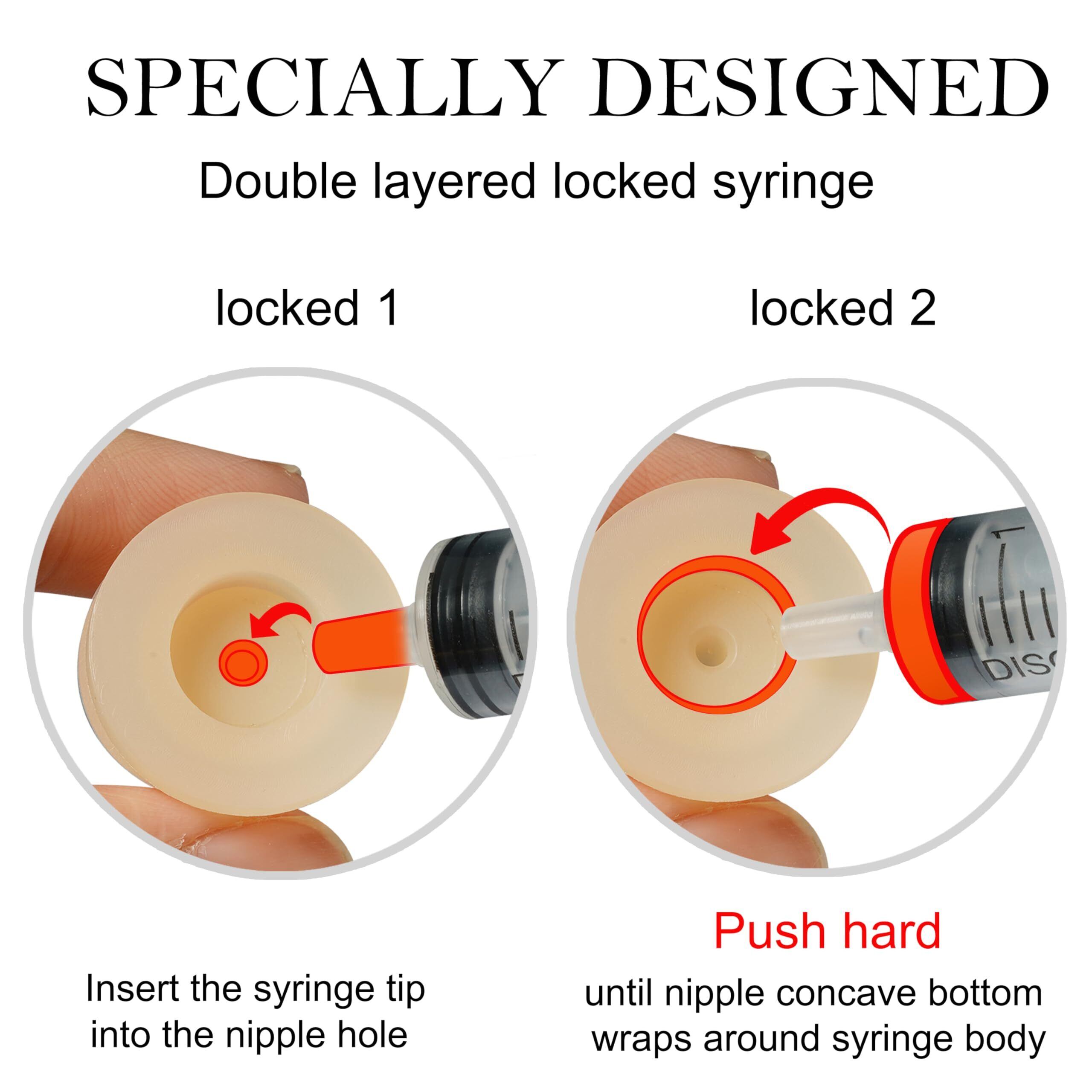 注射器付きおしゃぶりを使用すると窒息せずに牛乳の流れを正確に制御することができます