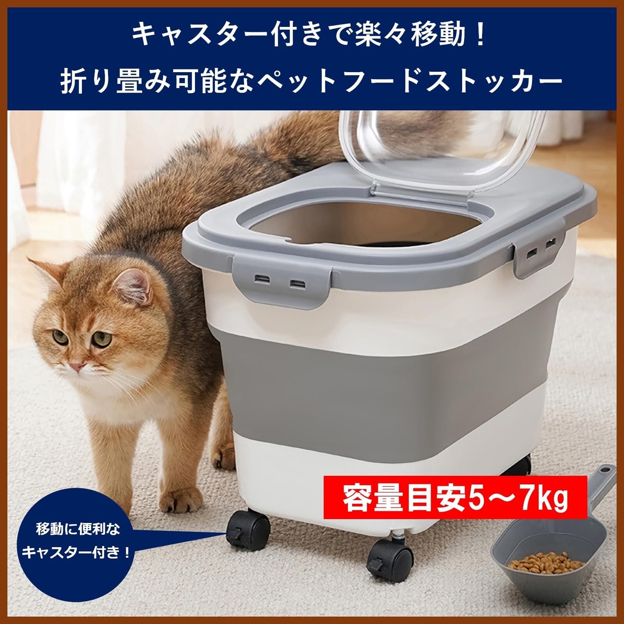 Rowaica ペットフードストッカー 密閉 大容量 折り畳み 犬 猫 ドライストッカー 保存容器 キャスター付き