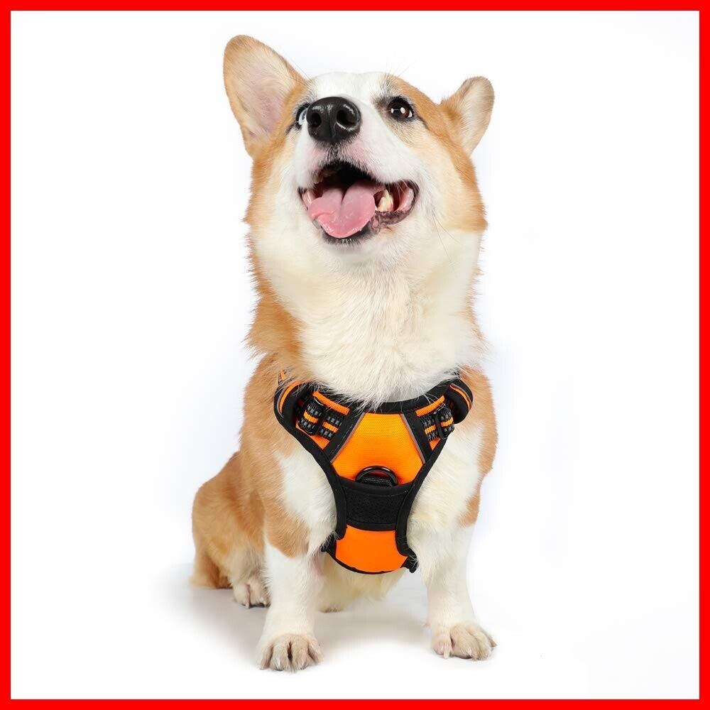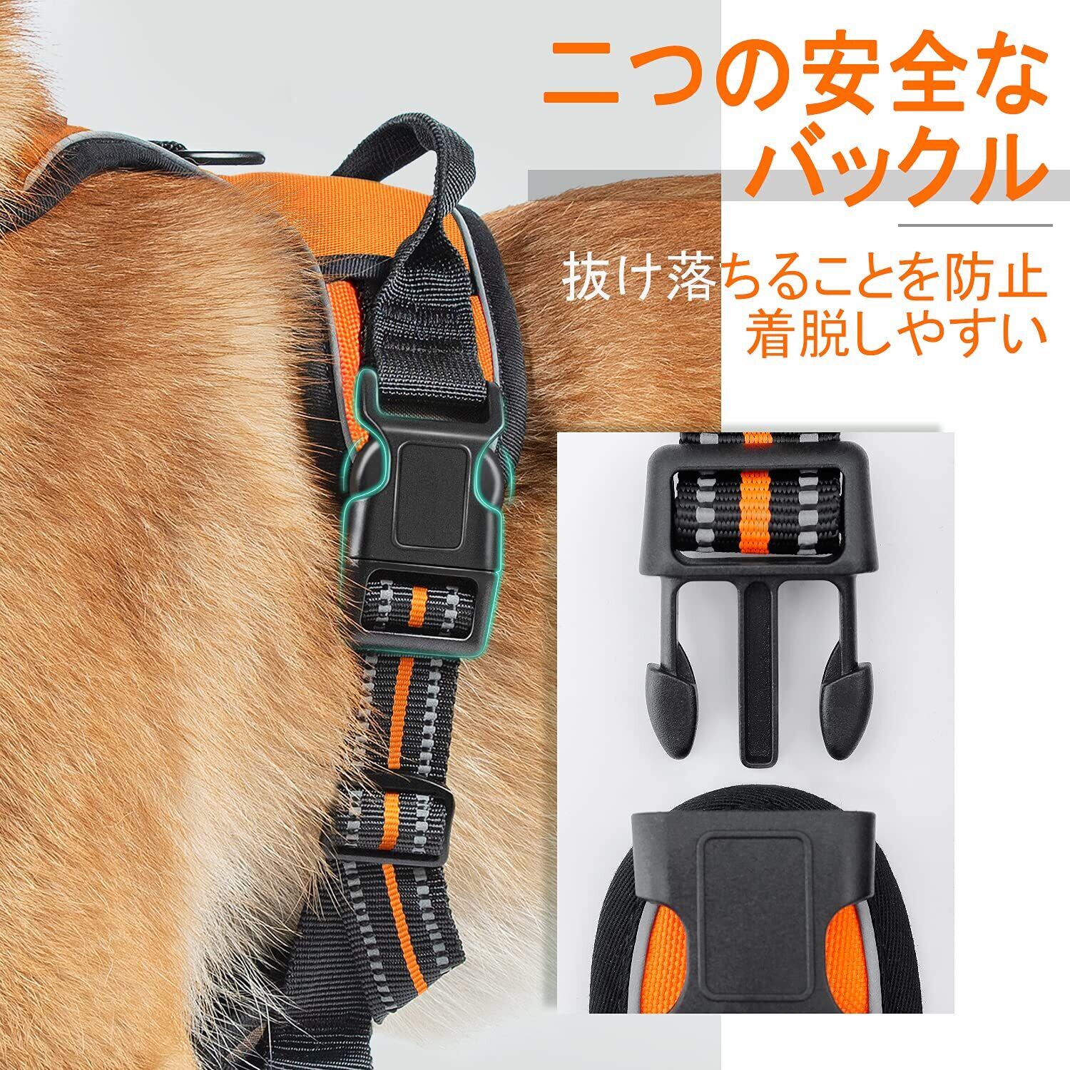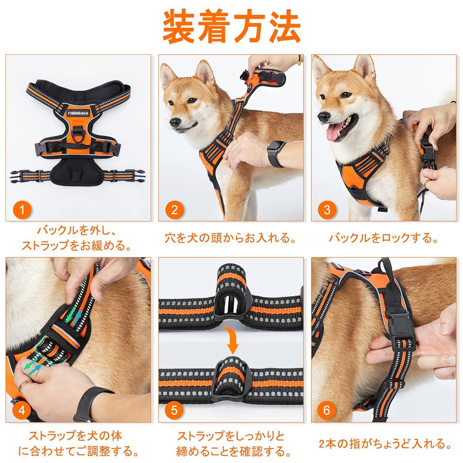 Rabbitgoo 犬 ハーネス 中型犬 首輪 13-20KG 引っ張り防止 サイズ調整可能 夜間反射材 抜けない 通気性 咳き込み防止 歩行補助ハーネス 老犬 介護用品 散歩 しつけ用 ソフト 小型犬 大型犬 柴犬 (オレンジ M)