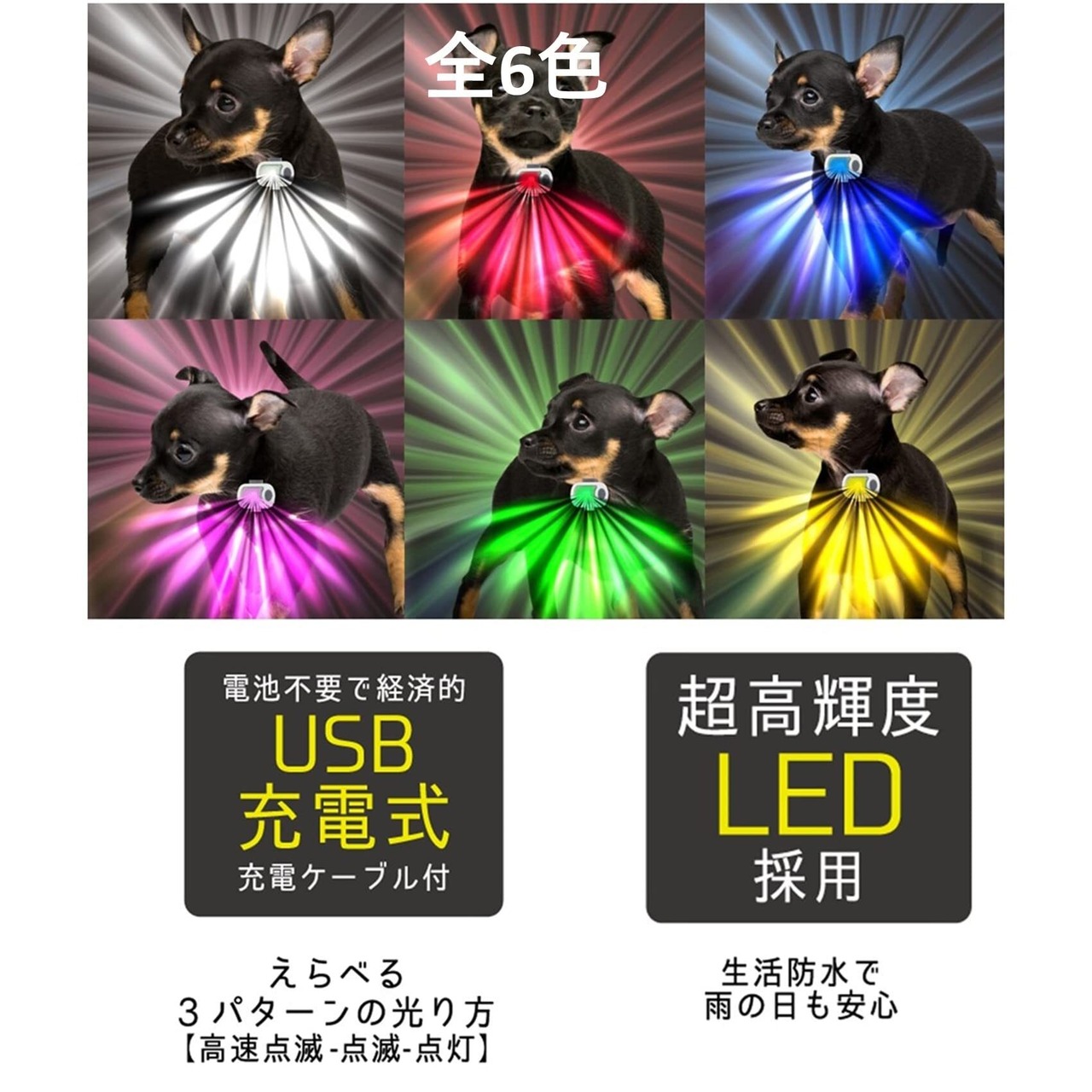 【カラーは6色】光のカラーを選んで夜の散歩を楽しめます。