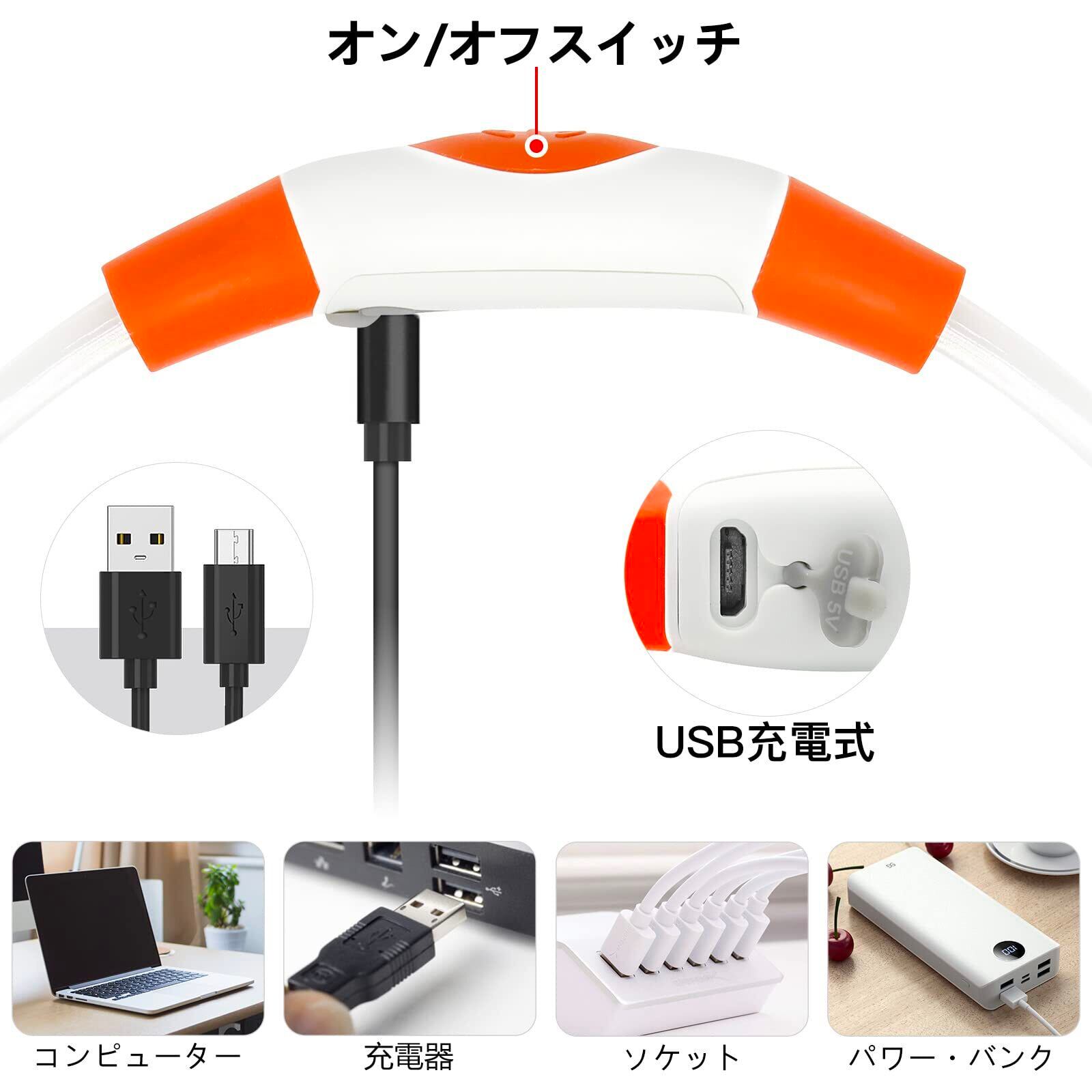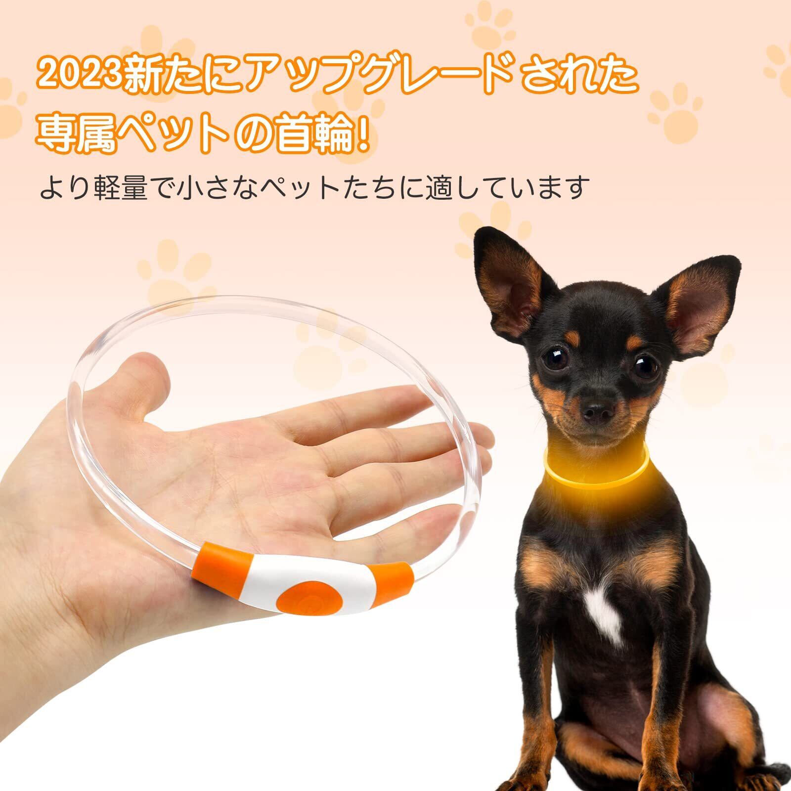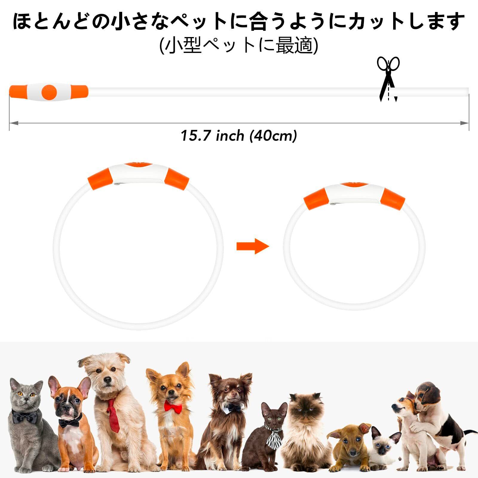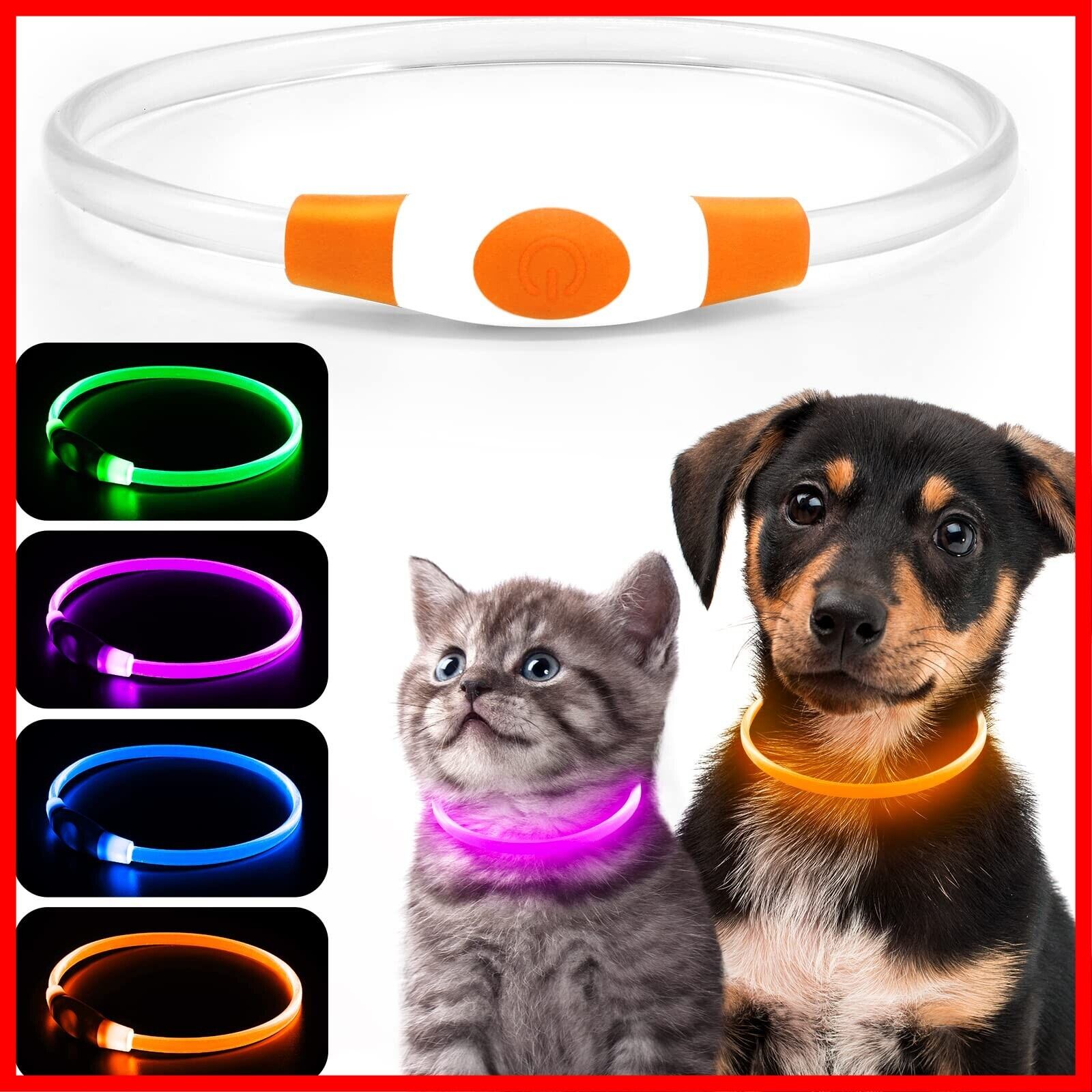 iTayga 犬 猫用LED光る首輪, ライトUSB充電式,長さ可調節,ナイロン 光る首輪,小型犬用安全犬用ライトナイトウォーキング用装着簡単 柔らかい 軽量 サイズ調整可能 【視認距離500mで夜間も安心】(Feichi JP はiTaygaの商品を唯一販売店です) (オレンジ-01)