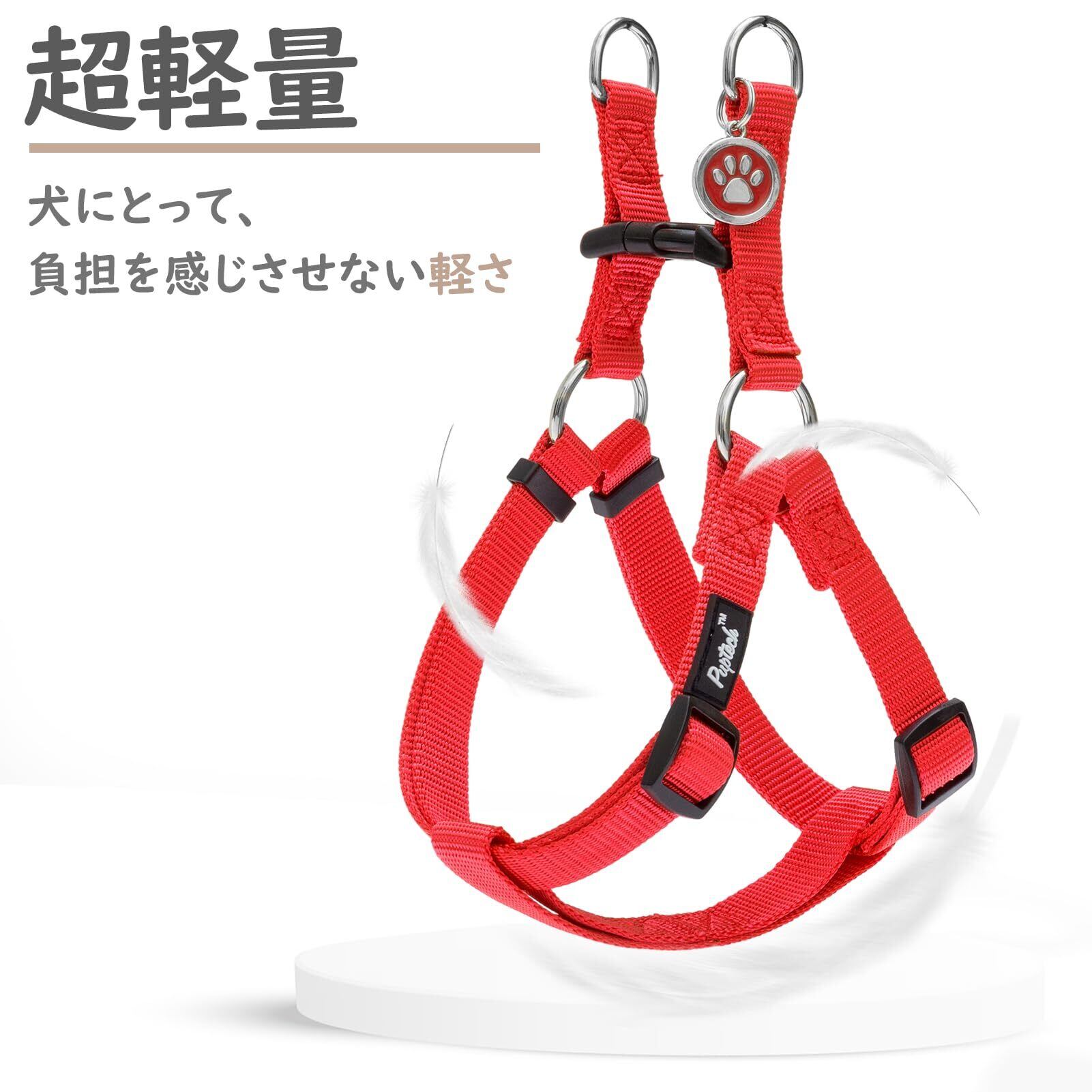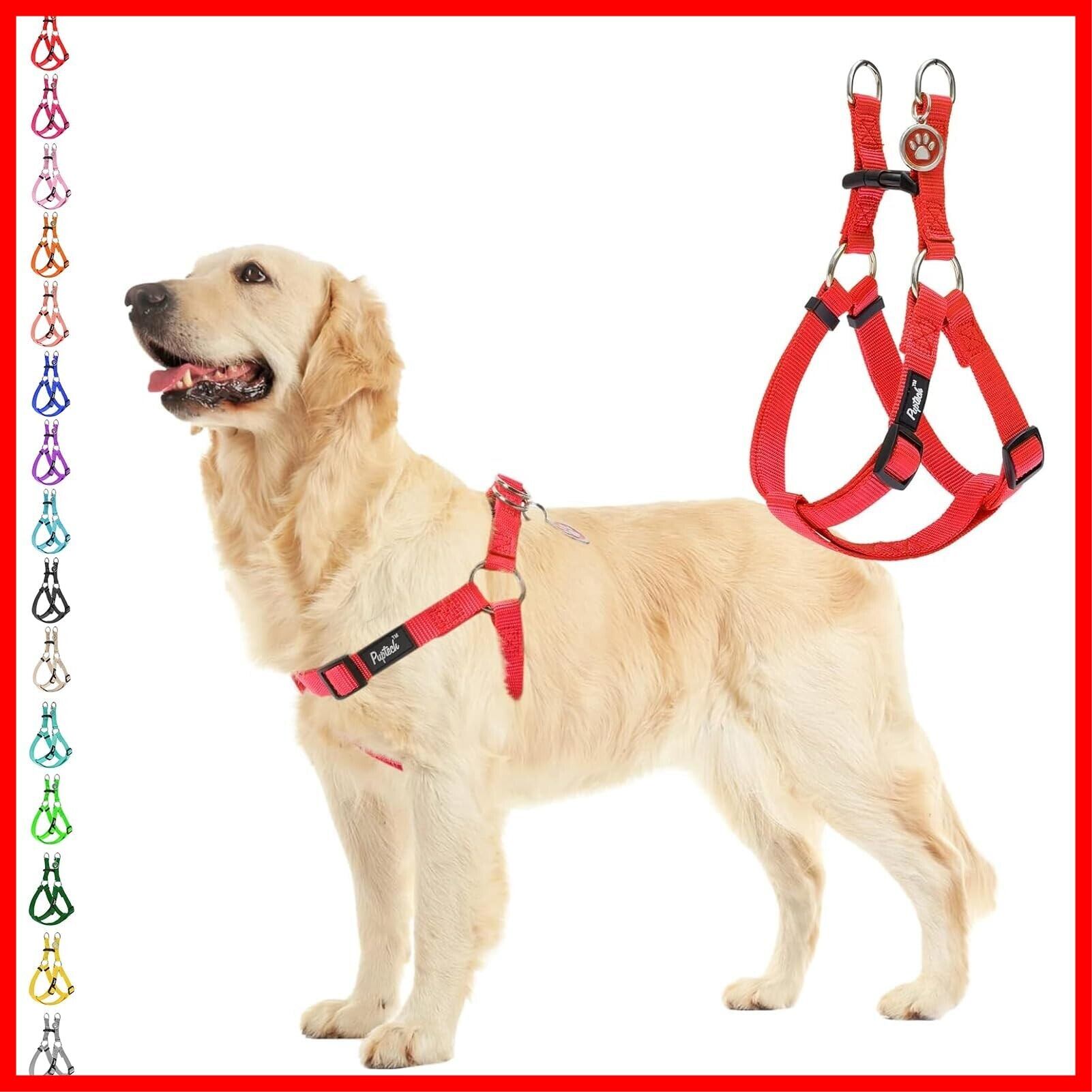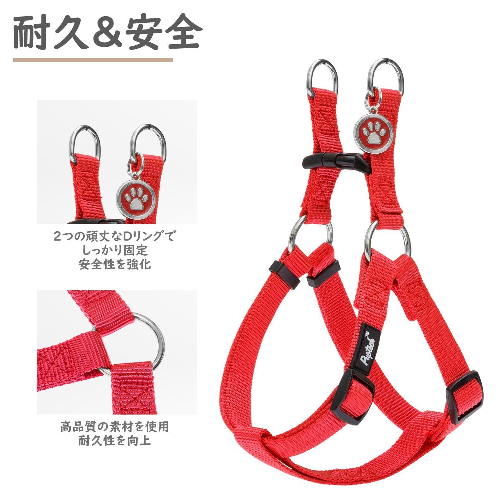 PUPTECK 犬 ハーネス 迷子札 犬 胴輪 犬用ハーネス 喉に優しいハーネス ペット用品 ドッグ はーねす 調節可能 着脱簡単 軽量 通気性 快適 負担が少ない 耐久性 引っ張り防止 安全 夜間反射 IDタグ付き 散歩 アウトドア しつけ 訓練 人気 可愛い おしゃれ 小型犬 中型犬 大型犬(レッド、Mサイズ)