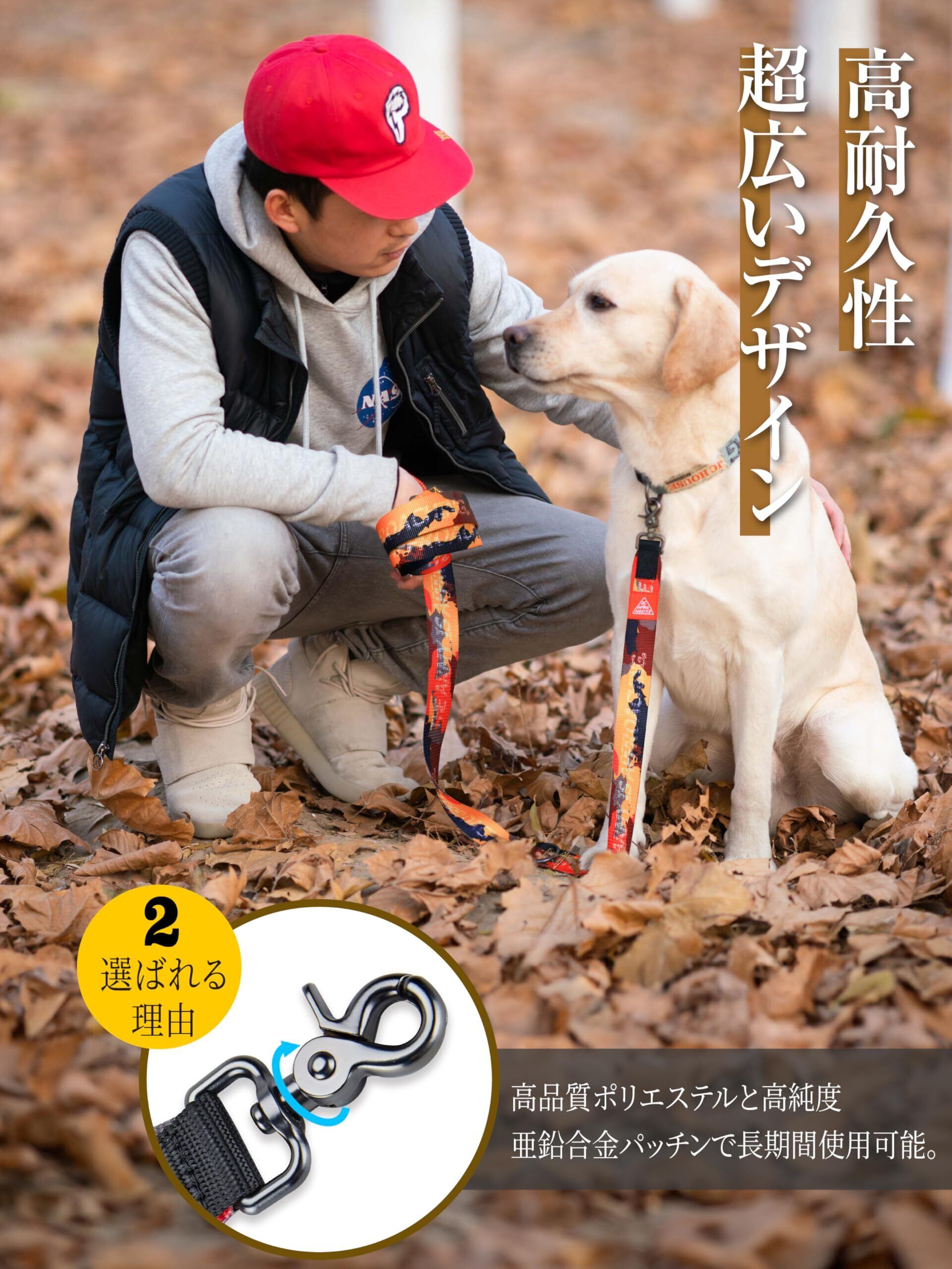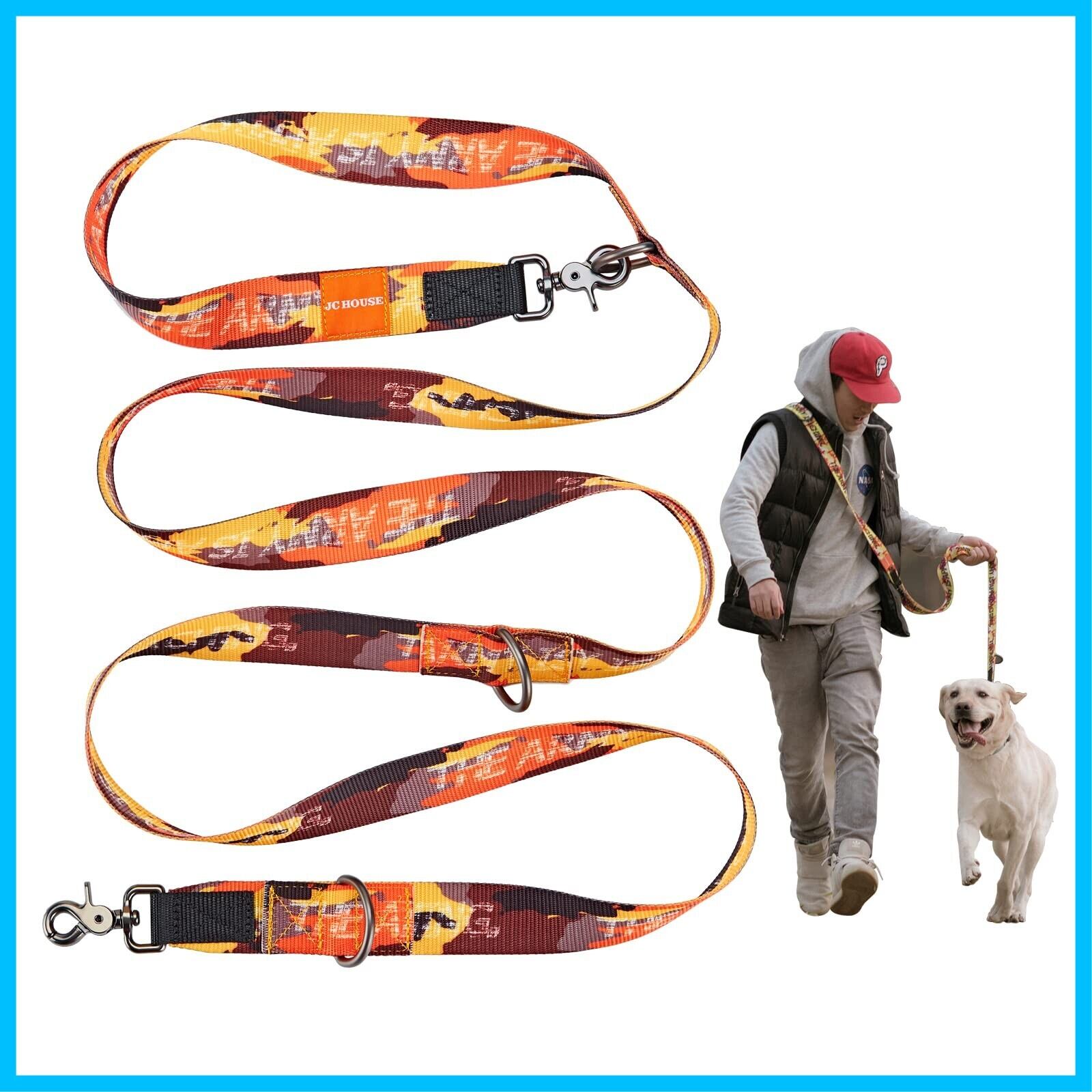 JC HOUSE 犬 リード 中型犬 大型犬専用 肩掛けリード 6in1 多機能リード 訓練 散歩 犬用リード 長さ2.5m 頑丈 高強度材料 噛み切れ防止 荷重100kg おしゃれ 迷彩オレンジ(1118)