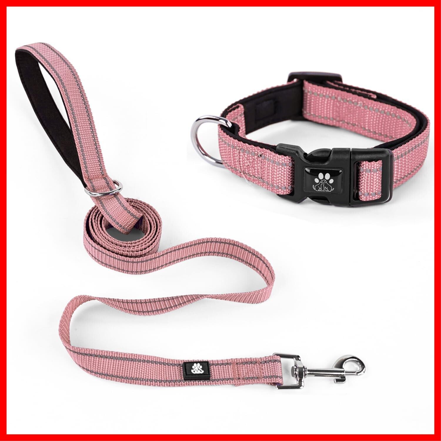 NESTROAD 犬用首輪・リードセット 調節可能 夜間反射 小型犬・中型犬・大型犬用 全犬種対応 1.5mリード付 おしゃれ メッシュ 通気性 安全 散歩・訓練用 ソフト 痛くない 簡単装着 丈夫 ドッグ(XS,ピンク)