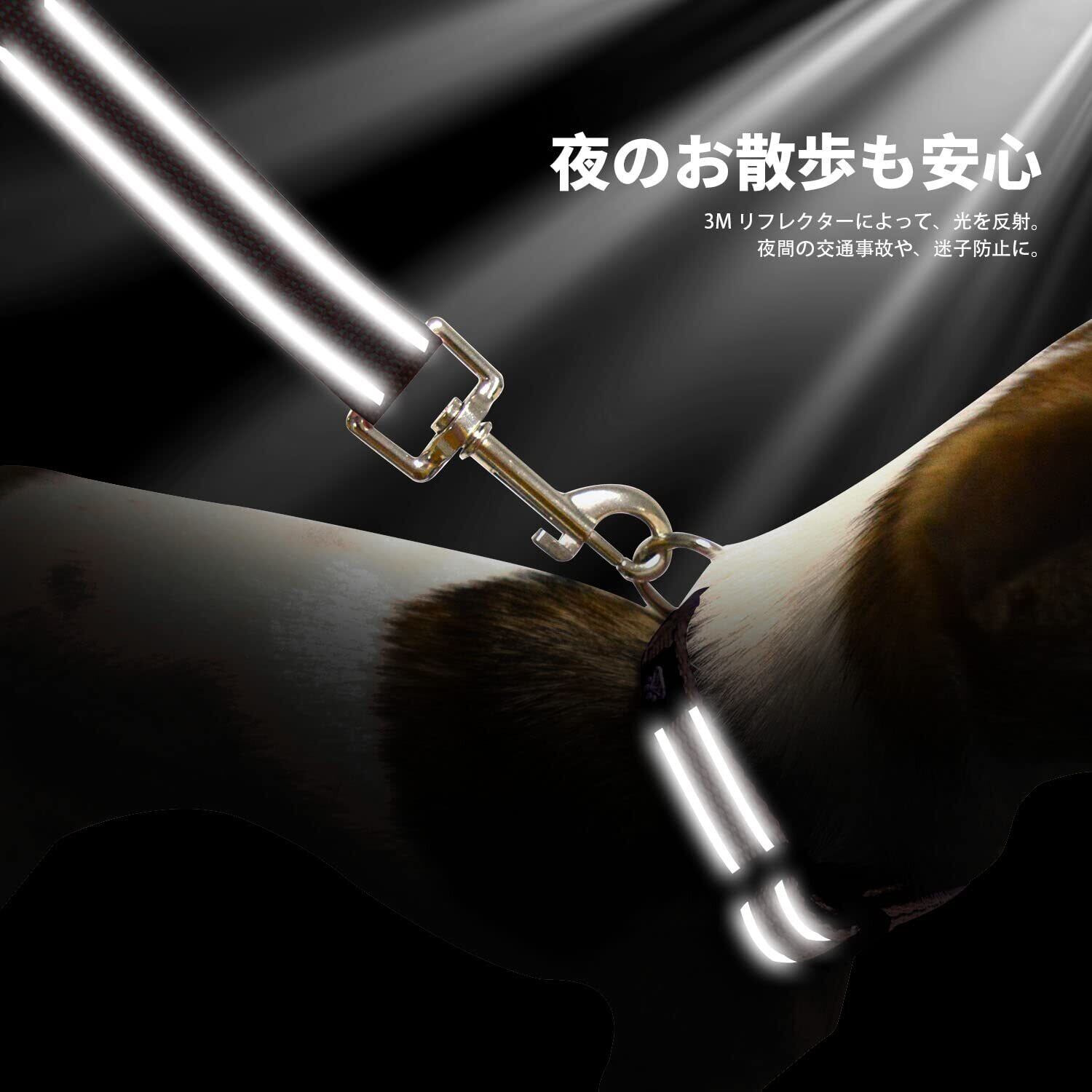 【夜間反射】リードも首輪も3M反射素材を採用して、暗い環境ではよく見えます。犬の散歩に視認性と安全性を提供します。