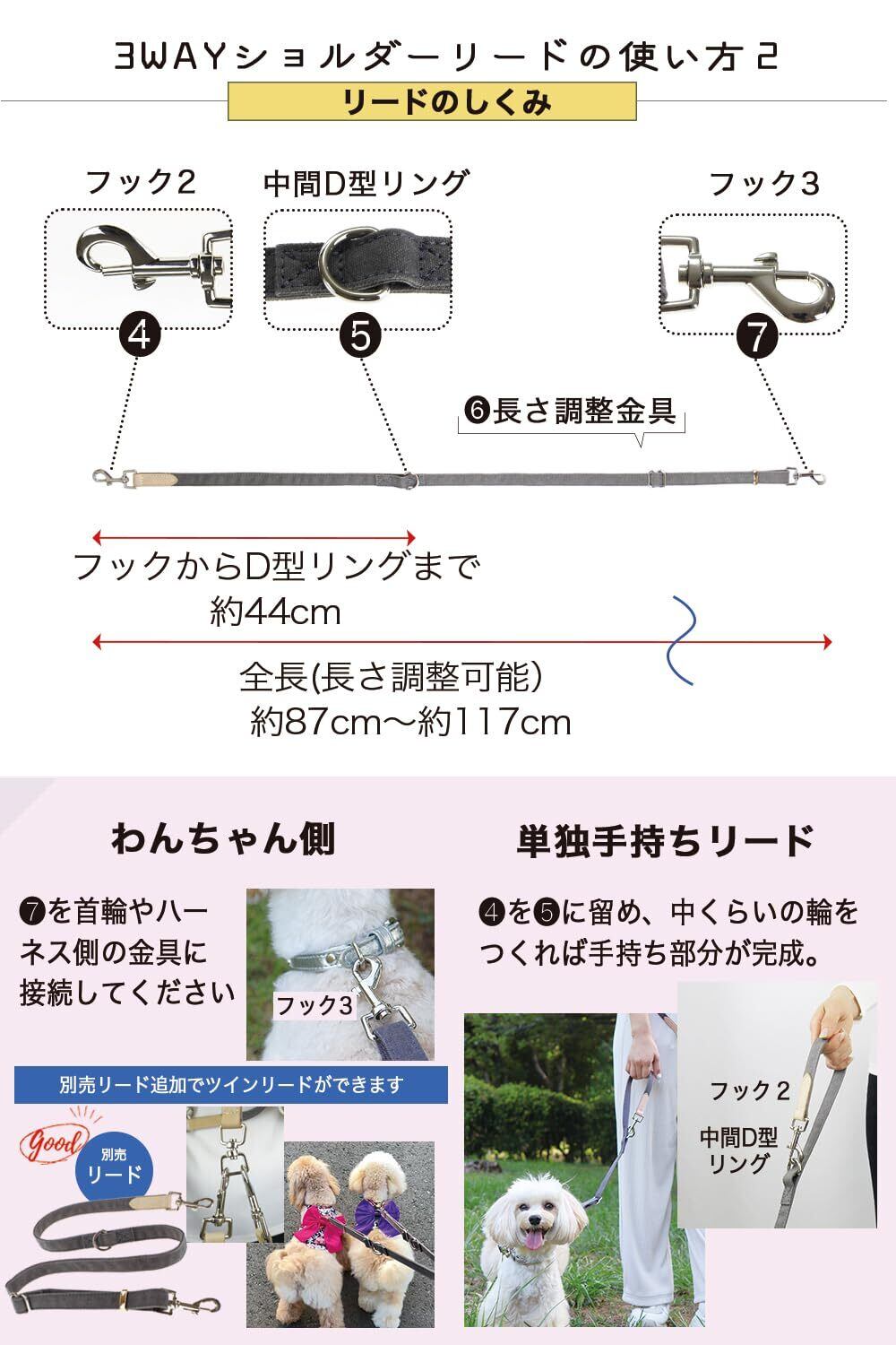 【追加リード別売でツインリードもOK!】リード部分のみ購入できますので、多頭飼いの方はツインリードにすることもできます。それぞれのリードには長さ調整金具がありますので、行動範囲に合わせて長さを決めることができます。