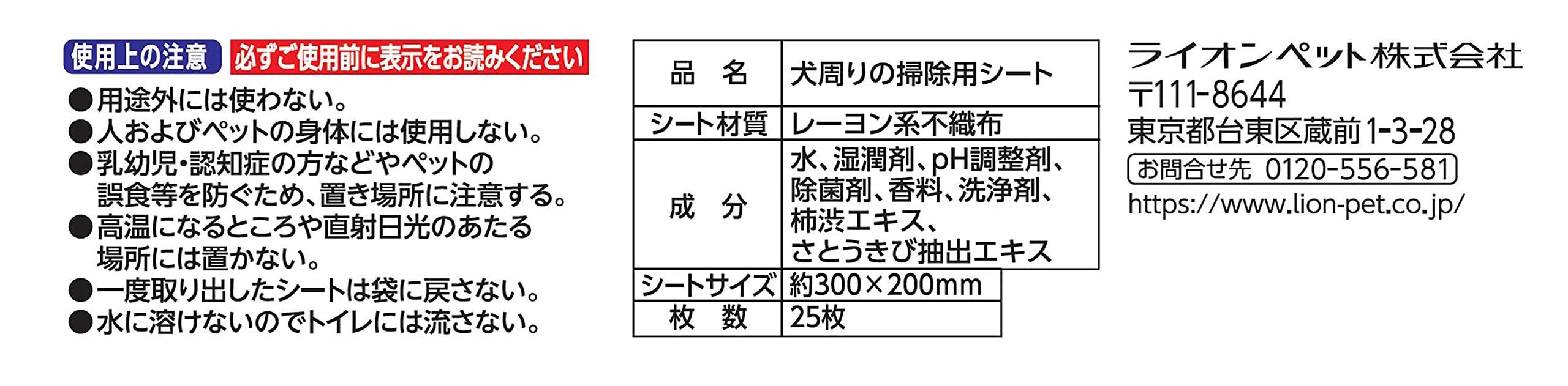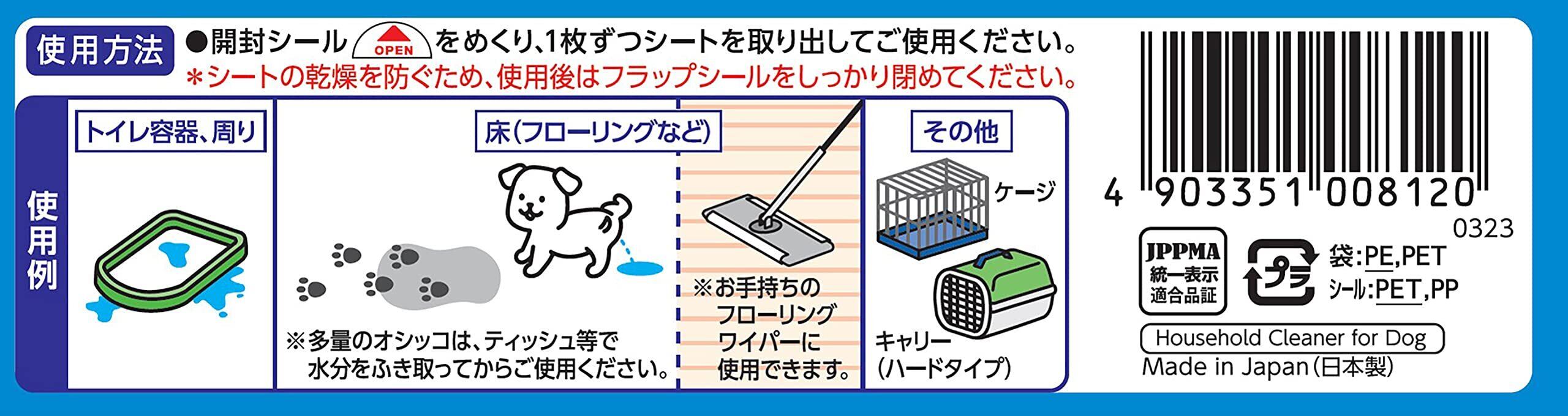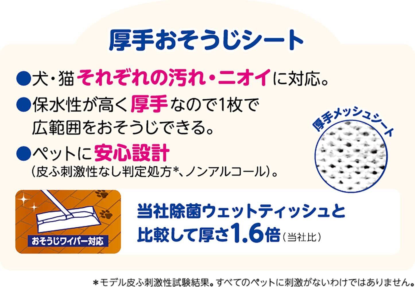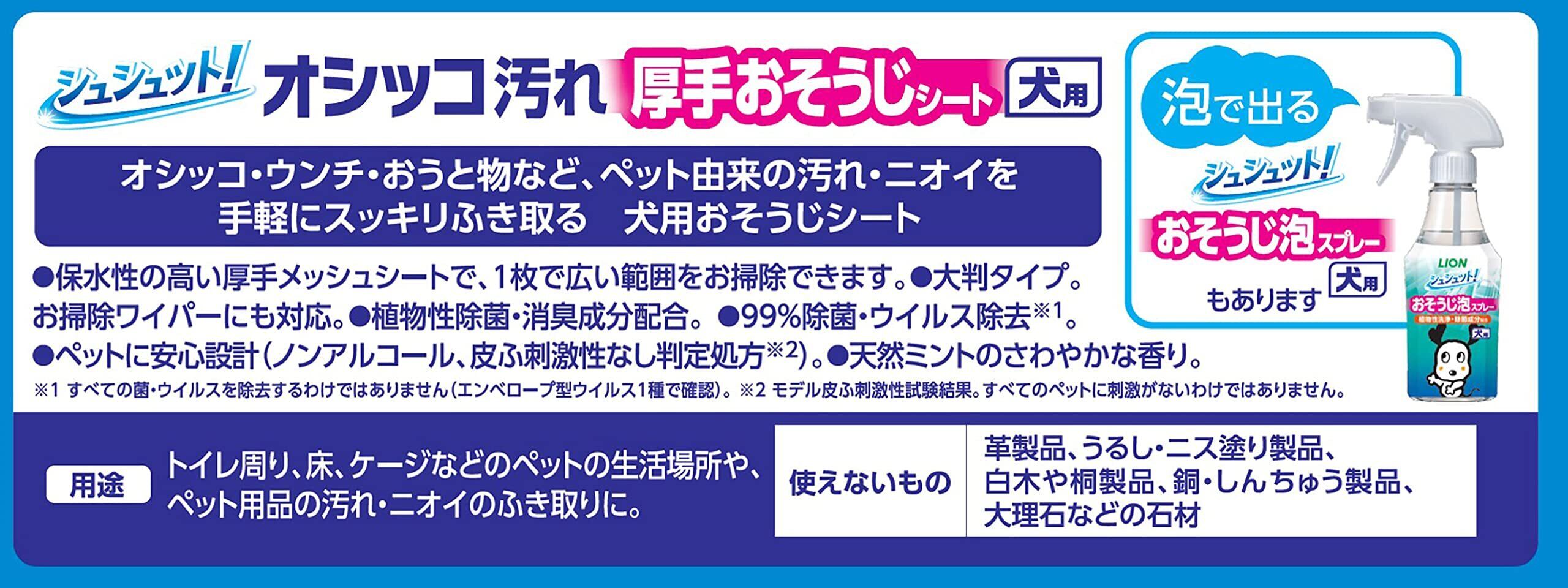 オシッコ・ウンチ・おうと物など、ペット由来の汚れ・ニオイを手軽にスッキリふき取る 犬用おそうじシート。