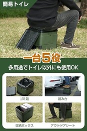 【防災の必需品 &一台5役】簡易トイレいつ起こるか分からない自然災害。特に近年は自然災害が多く、万が一に備えておく必要性を強く感じている方も多いのではないでしょうか。万が一の断水に備え 】付属の「凝固剤」でサッと固めて、付属の「汚物袋と防臭袋」で処理するだけ!収納ボックスとして、折りたたみトイレとして、シートとして、様々なシーンに応じて自由に使うことができます。