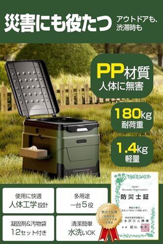 【防災士監修 & 強化型】 簡易トイレ 携帯トイレ ポータブルトイレ 非常用トイレ 防災グッズ 耐荷重180kg 持ち運び易い 組み立て簡単 多用途 一台5役 コンパクサイズ 汚物袋付きX12 防災トイレ 15年長期保管可能 地震/災害/アウトドア/台風/洪水/災害時/断水時/介護用 (ぐんりょく)