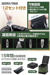 【パッケージ内容】◆本体*1 ◆汚物袋:12枚 ◆凝固剤(高吸水性樹脂):12袋 ◆収納袋*1 ◆取扱説明書*1。正しい使用方法において、商品の使用中に万が一商品不具合のようでしたら、アマゾンの購入履歴より弊社までご連絡いただければ迅速に対応いたします。