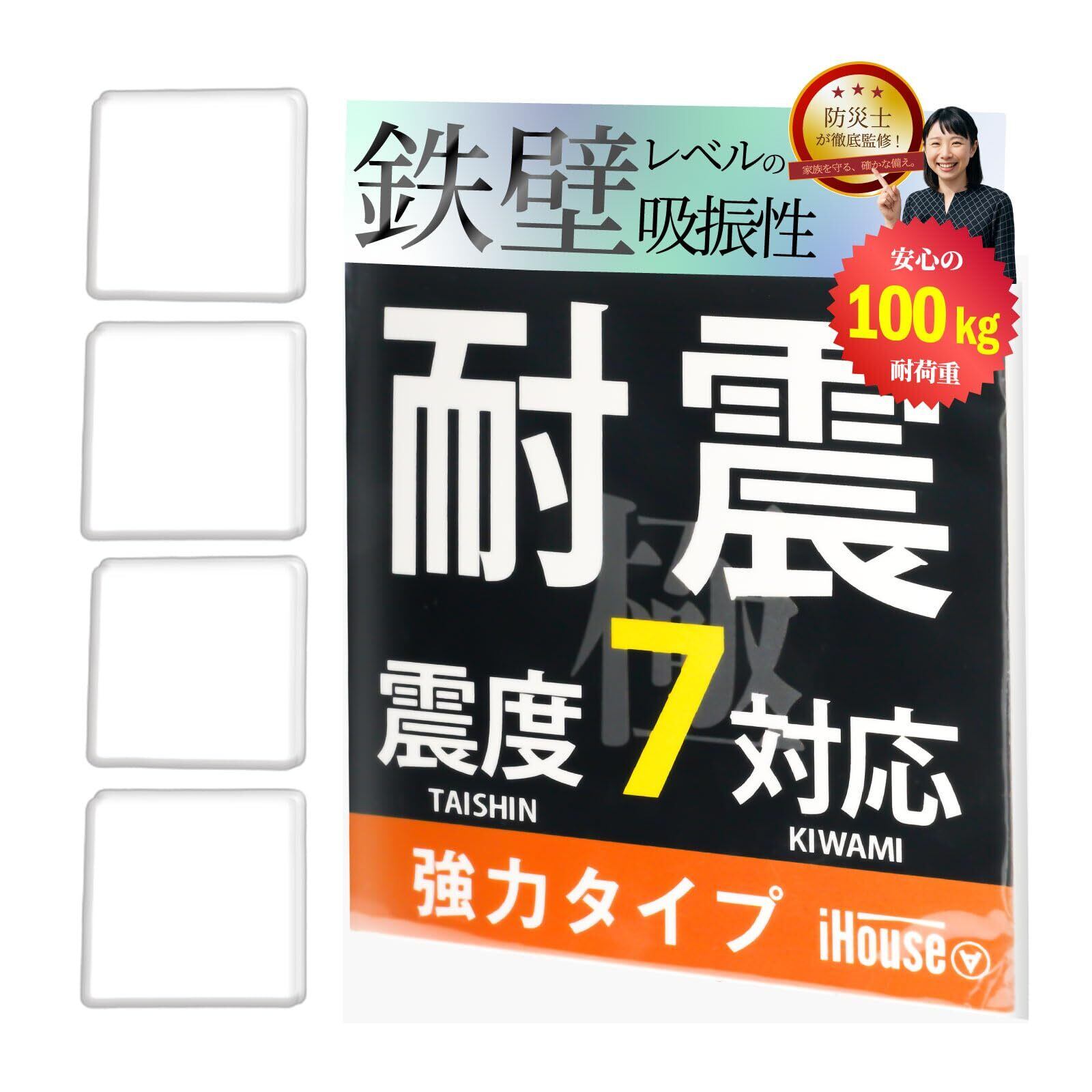 iHouse all 耐震ジェル 極 耐震マット 粘着マット 滑り止め 水洗い可能 振動吸収 地震対策 震度7まで対応 耐荷重100kg (クリア 4枚 (4cm×4cm×0.5cm))