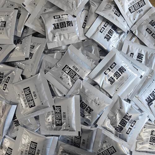 【トイレ 凝固剤 100回分×凝固剤 粉末|長期保存の実用設計】 アルミ遮光包装|直射日光下でも15年間成分安定。軽量小型設計(1包7g)|収納スペースを圧迫しない。水不要で即使用可能|断水時/車中泊/渋滞時の緊急対応。