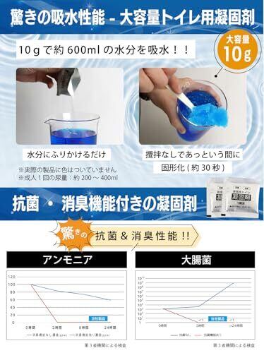 【抗菌・消臭機能】抗菌・消臭性能付きの凝固剤が便や尿を素早くゼリー状に固め、臭いや菌の発生を抑えます。