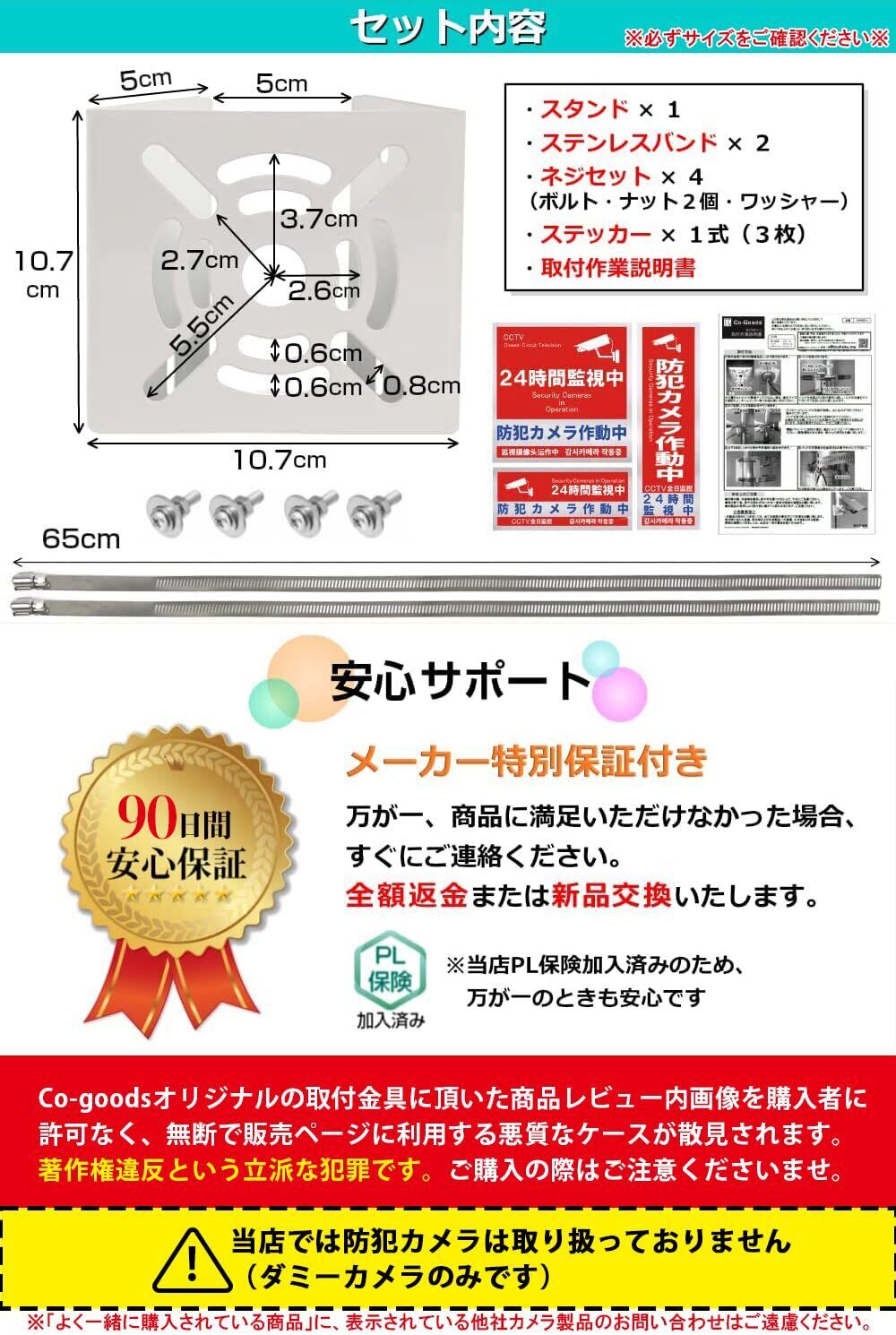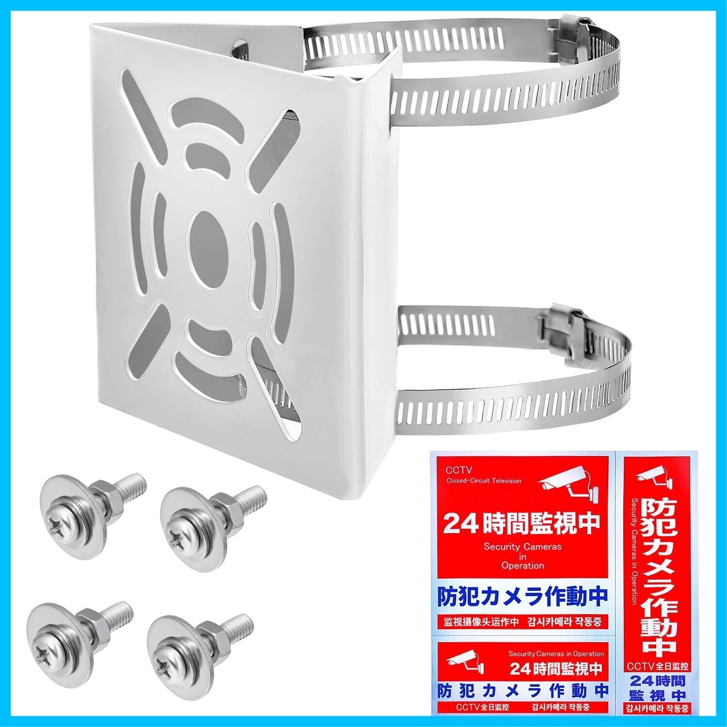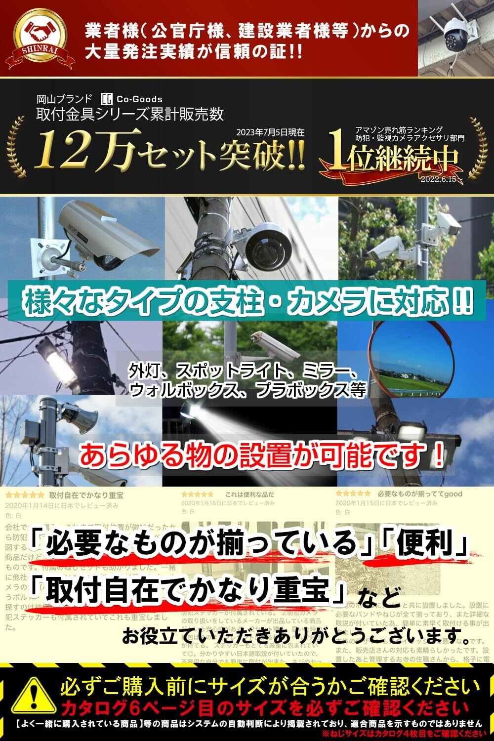 Co-Goods 取付金具 ポール カメラ ブラケット スタンド ハウジング 防犯カメラ 円柱 角柱 [すぐ使える フルセット]( ステンレスバンド 2本 / ボルト セット4式 / 防犯ステッカー 3枚 付属 ) (白)