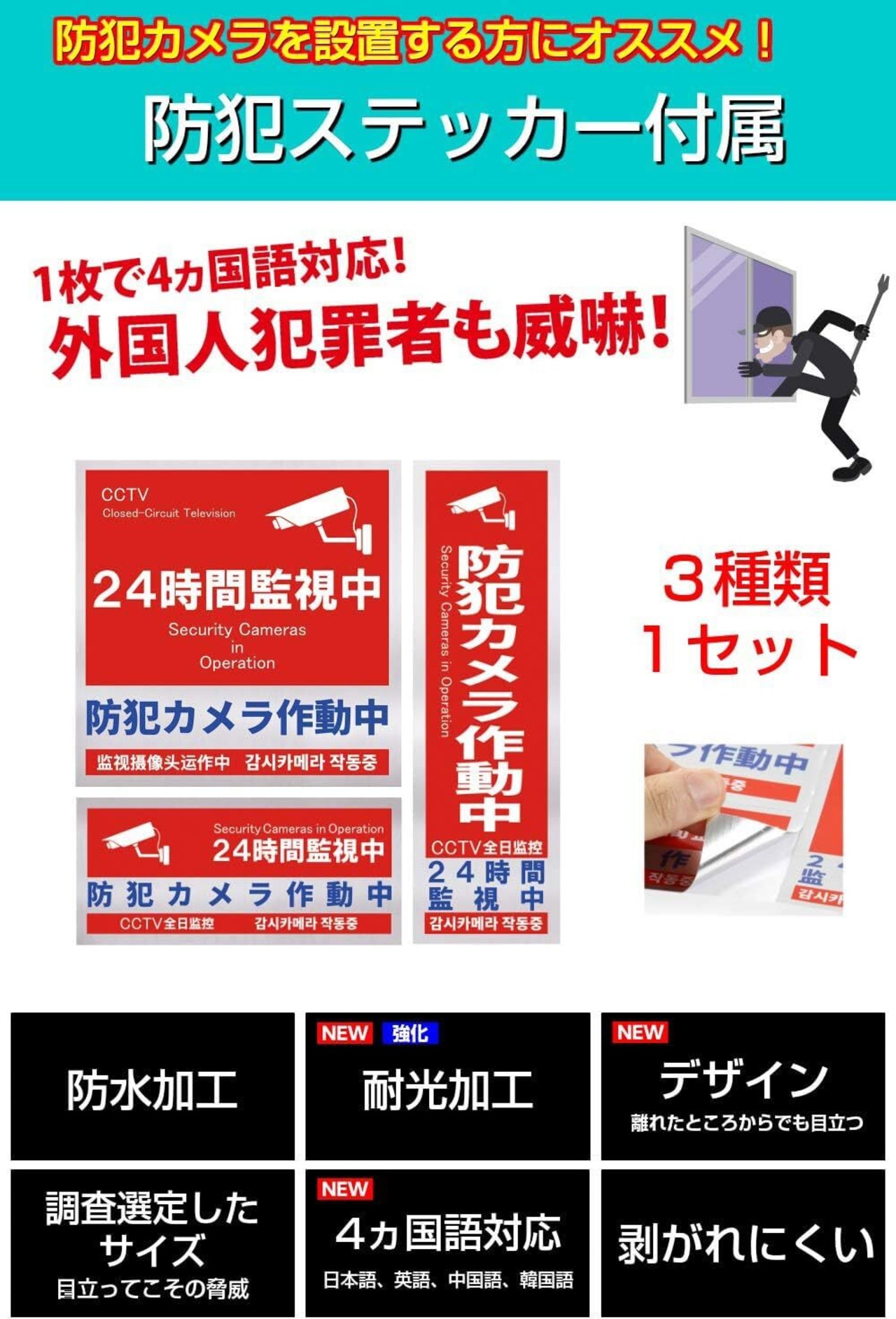 【デザイン刷新・耐光防水加工強化】 付属Co-Goodsオリジナル 防犯ステッカー は、お客様のお声を反映した厳選サイズ&デザインを採用。また、 [ 高級耐光特別インク ] および 〈 防水強化 シート 〉 に素材を変更・バージョンアップしました ( ※厳しい条件下で使用試験済)