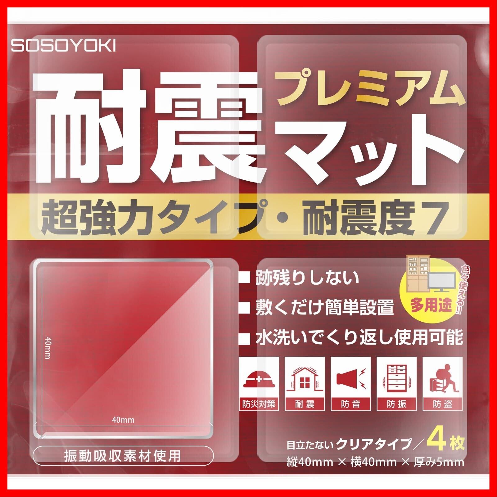 【SOSOYOKI】 耐震マット プレミアム 超強力タイプ 耐震度7 耐震ジェル 耐荷重100kg クリア 4枚入り