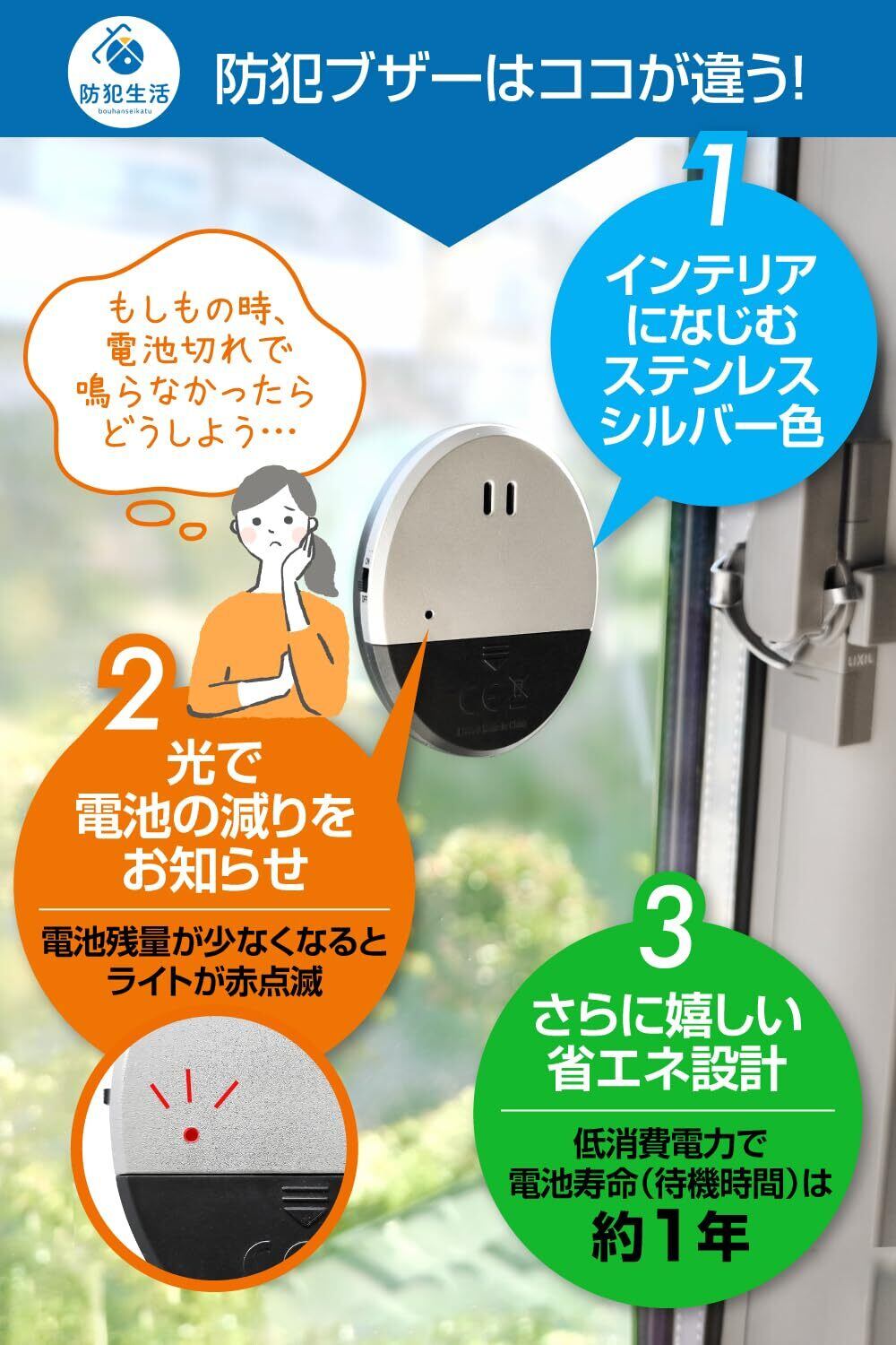 【インテリアになじむステンレスシルバー色】シルバーやグレー系はもちろん、ホワイトやブラックなど様々な色のドアやサッシになじむ為、使い勝手の良い 窓用防犯ブザー です。
