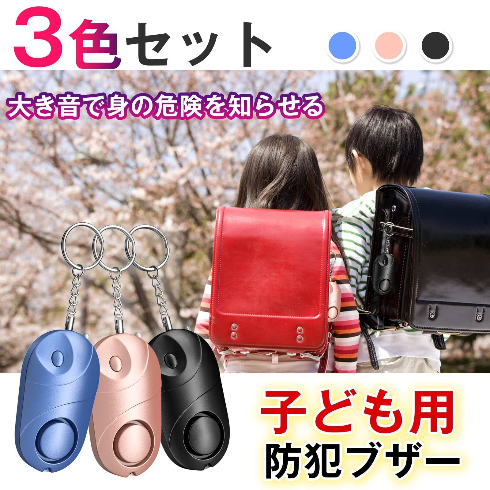 防犯ブザー 防犯アラーム 3個セット Qosea 140dB 爆音 LEDライト付き 小学生/女性/お年寄り 大音量アラーム 痴漢撃退 誘拐防止 ピンを抜くだけ ピンク+ブラック+ブルー