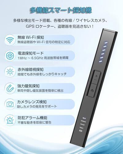 【2025業界革新版】盗聴器発見機 盗聴器発見器 盗撮カメラ 検出器 GPS追跡装置探知機 RF無線スキャナー カメラ探知機 隠しカメラ 防止対策 盗聴チェッカー 信号探知機 6つのモード搭載 6段階感度調整 高感度 高性能 電波探知 簡単操作 Type-C充電式 小型軽量 女性 護身用 プライバシー保護 車 部屋 浴室 ホテル オフィス 旅行用 日本語取扱書