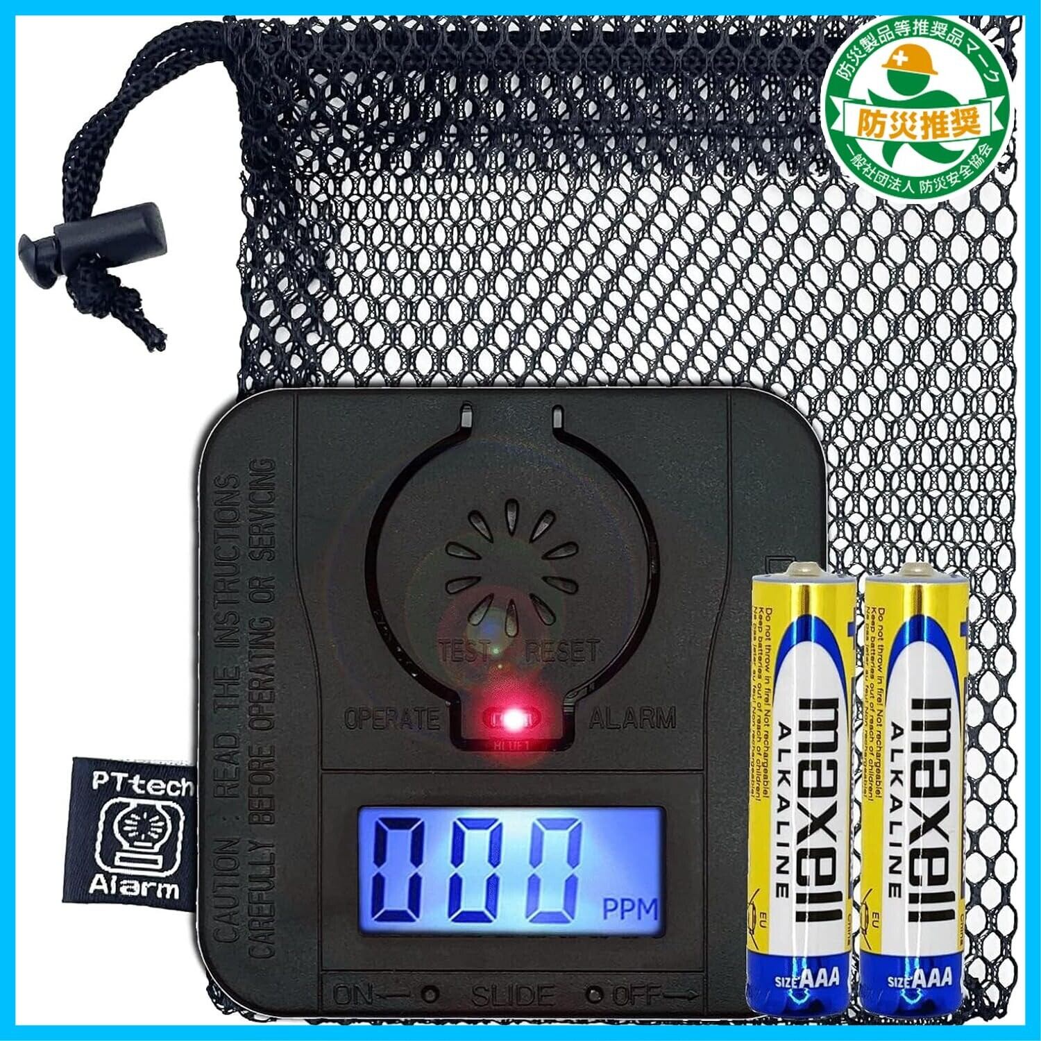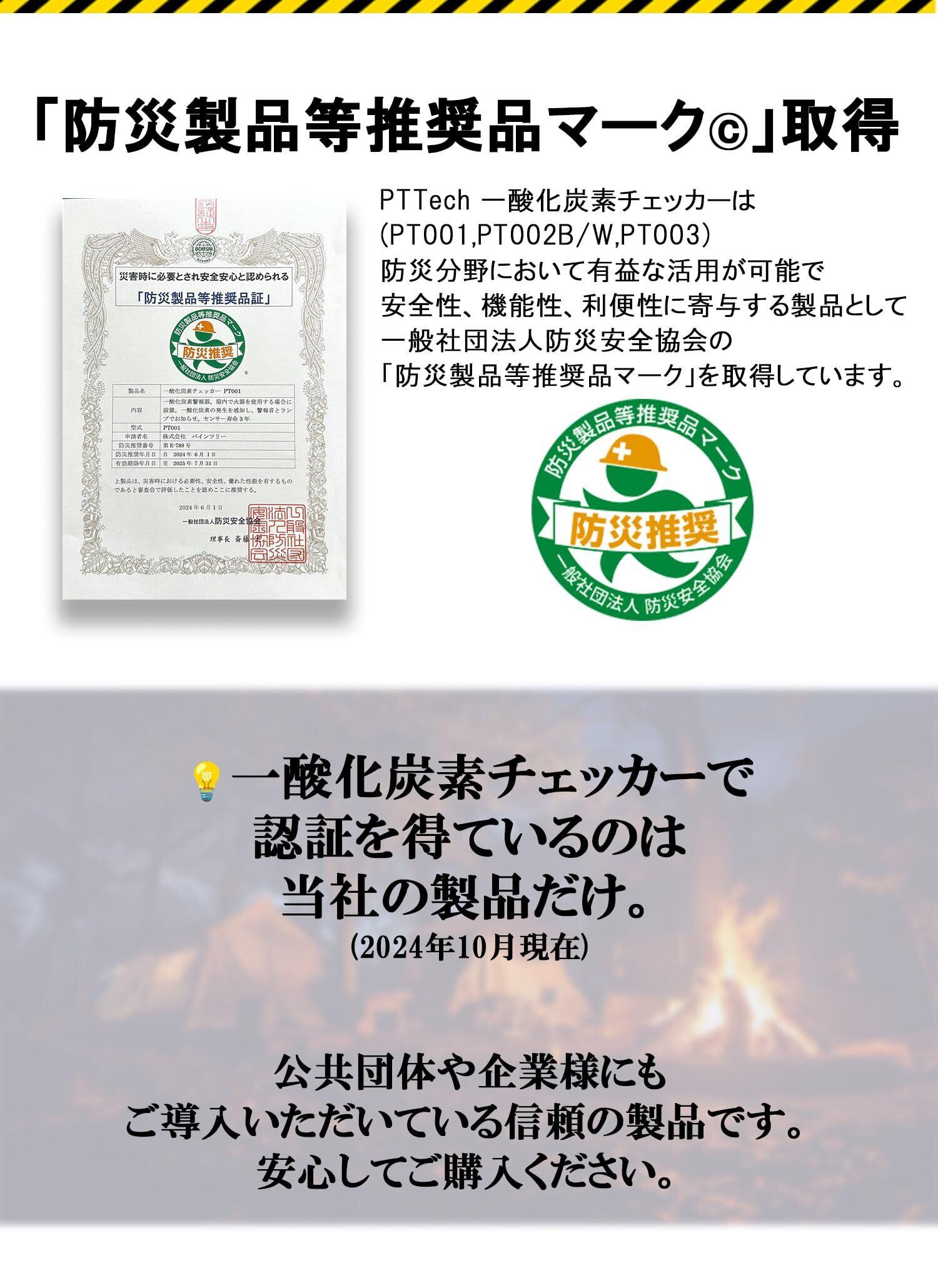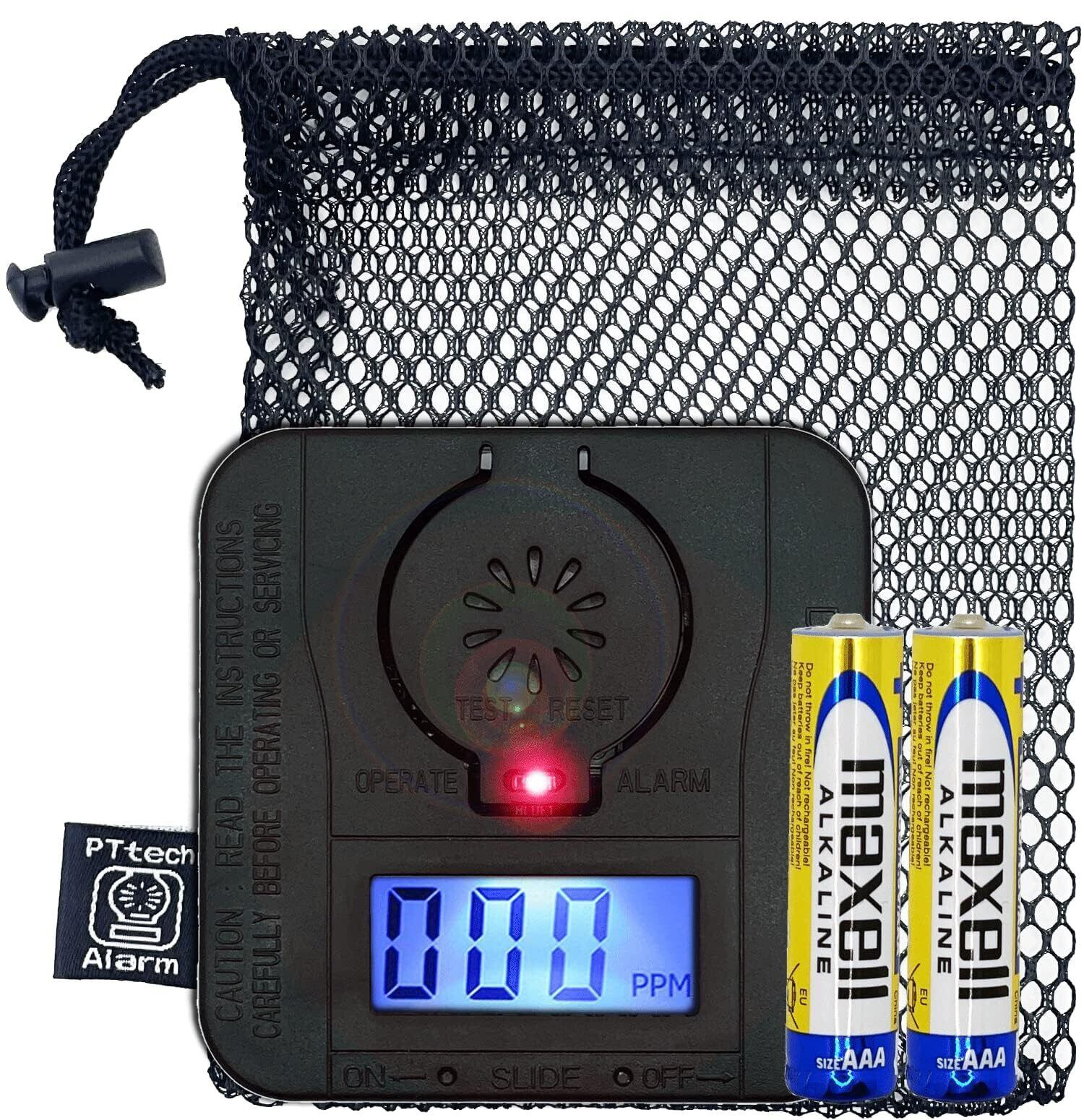 【 防災製品等推奨マーク認証品】PTTech 一酸化炭素チェッカーキャンプ用 ミニサイズ 電池付き 一酸化炭素警報器 車中泊 防災用品 ブラックギア 法人採用モデル(PT002ブラック)