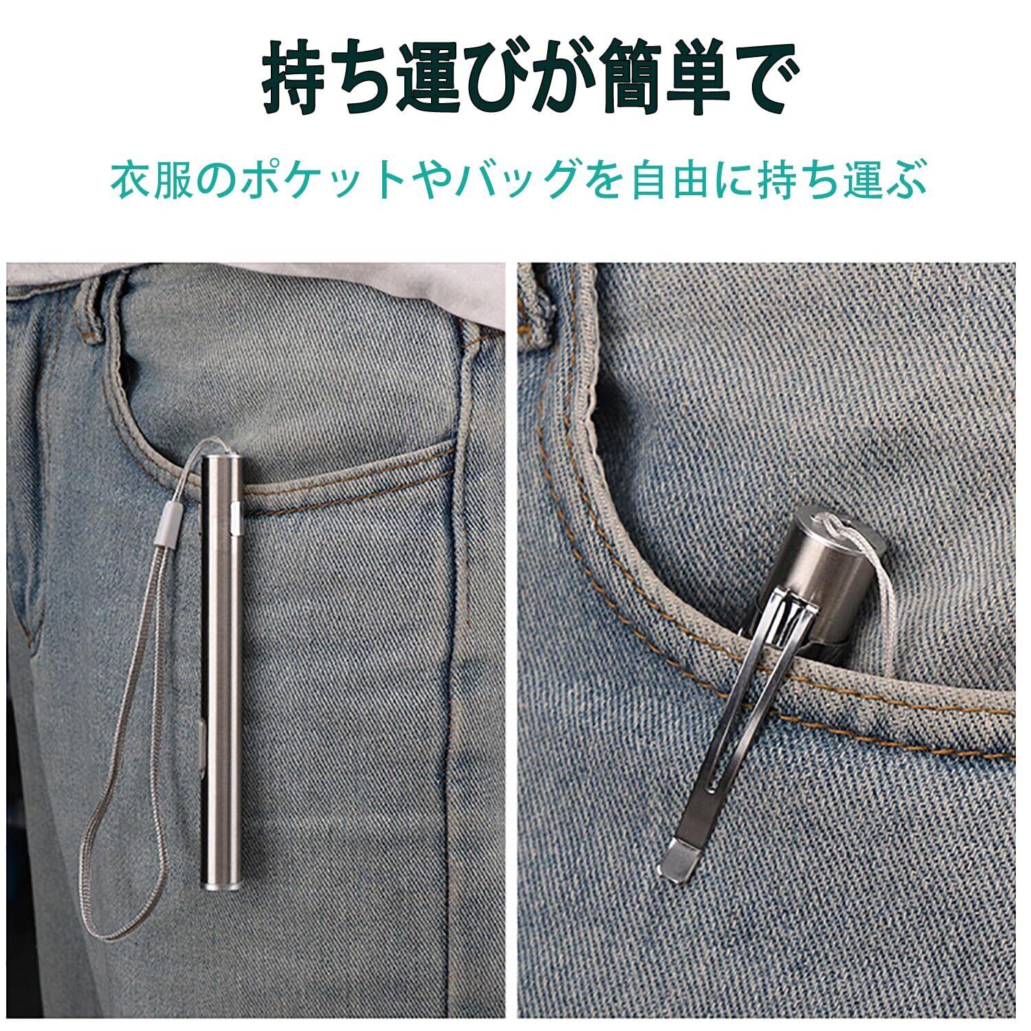 【小型軽量】小型軽量のボールペンとほぼ同じ大きさなので、胸ポケットかばんのペン差しに収まるコンパクト懐中電灯です