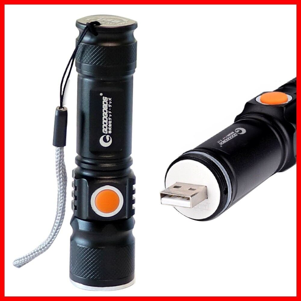 グッド・グッズ 高輝度 1800LM USB 充電式 懐中電灯 強力 小型 IP65 防水 ハンディライト ledライト ズーム機能 アウトドア 防災対策 犬散歩 自転車 登山 防災 地震 避難対策 ES-20U