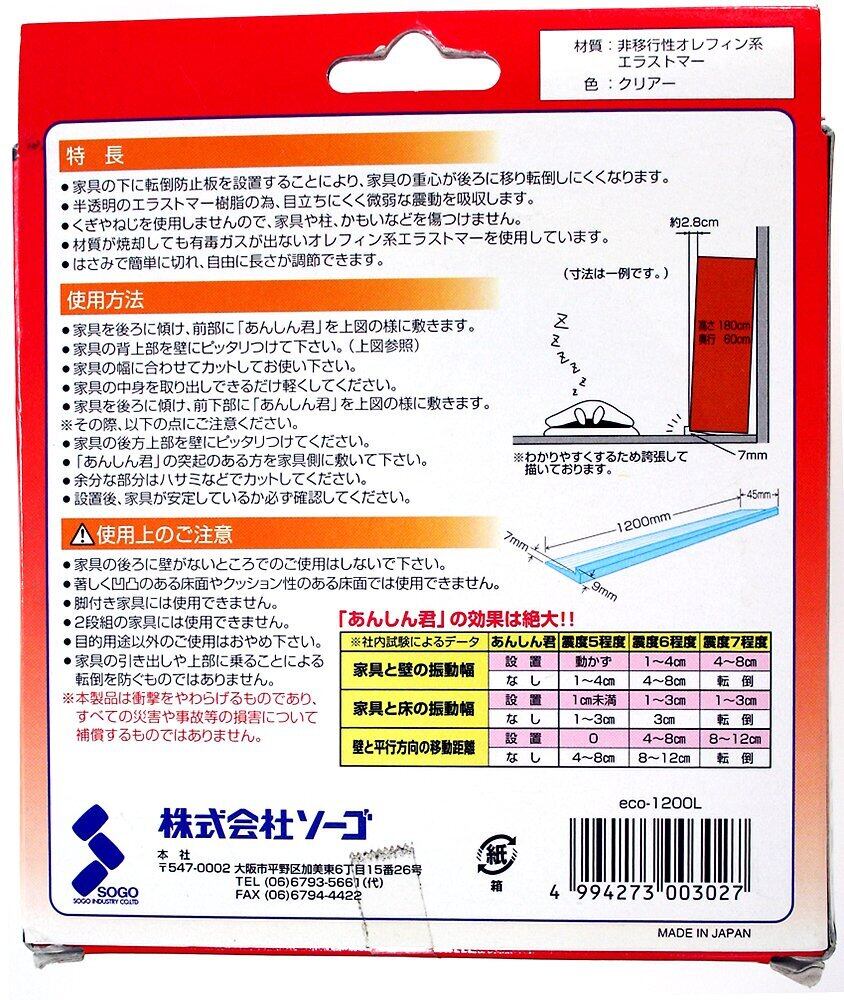 株式会社ソーゴ ソーゴ エコ家具転倒防止安定板 あんしん君 120cm クリアー eco-1200L