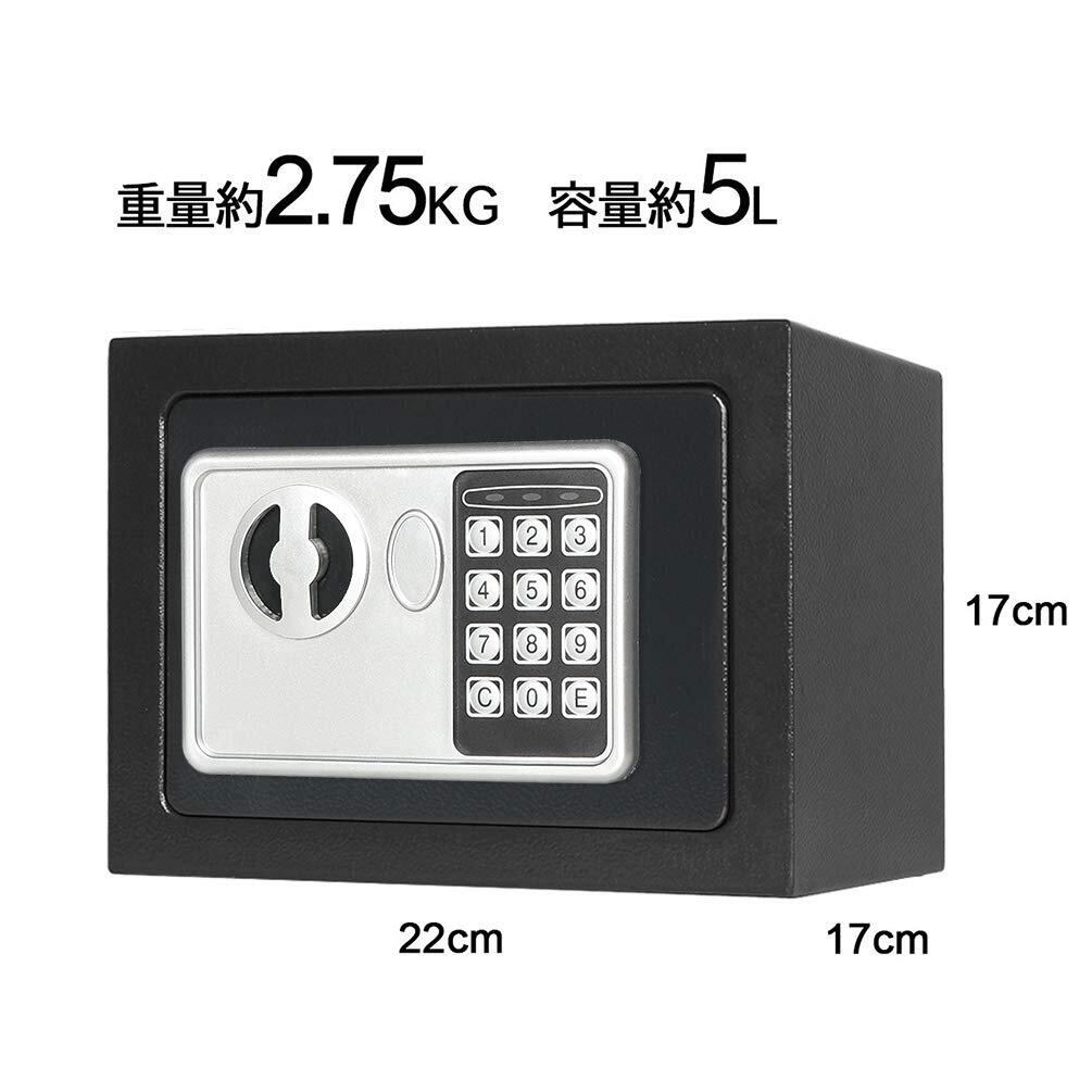 Lysmics 金庫 ミニ金庫 電子金庫 テンキー式 小型 家庭用 オフィス 壁付け対応 緊急キー付き 23*17*17cm (ブラック)