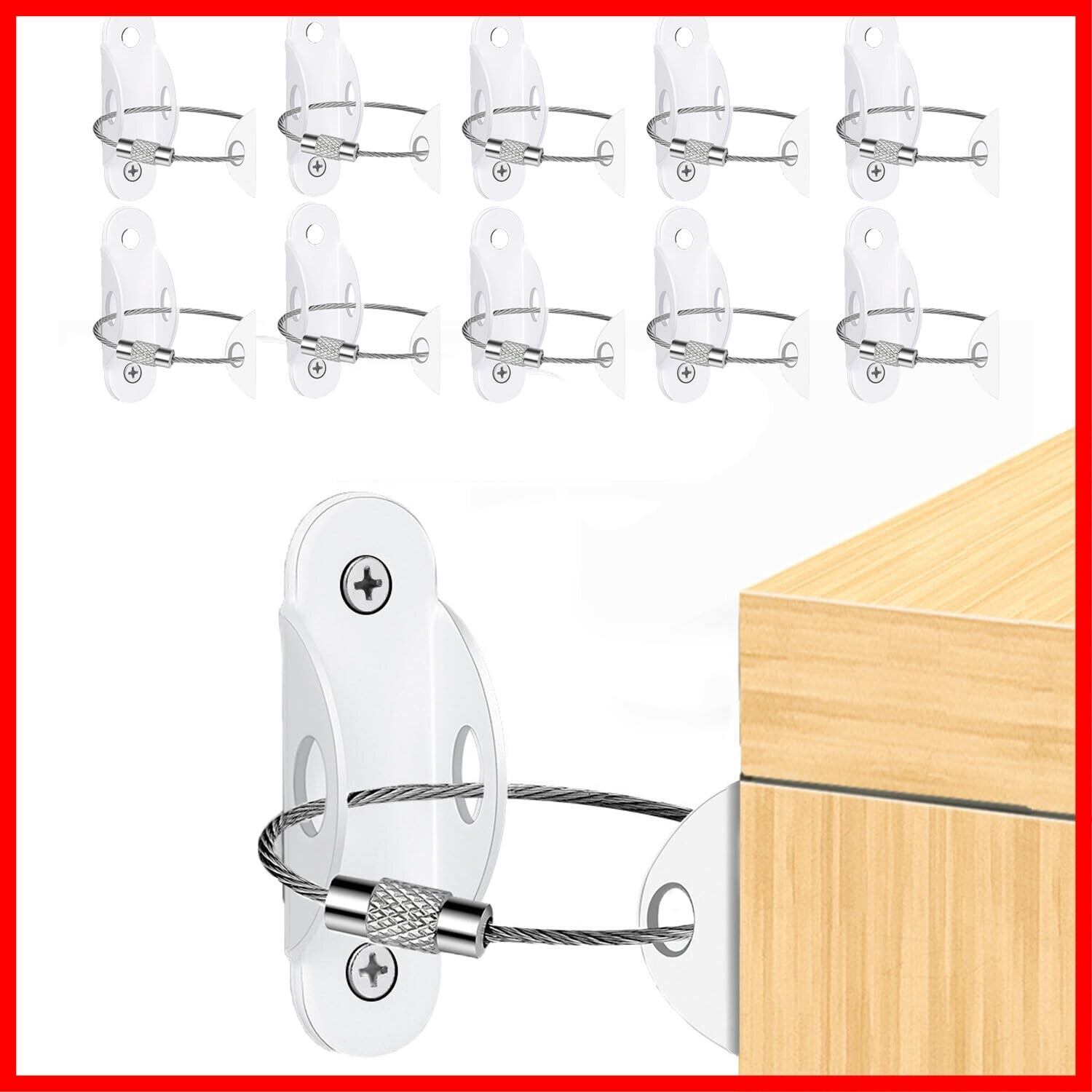 Acidea 10個 家具転倒防止グ 耐震金具 転倒防止 ワイヤー 地震対策ッズセット 調整可能 簡単取付 固定 アンカー 耐震 落下防止 子供 安全 ストラップ 家具ストラップ 家具アンカー
