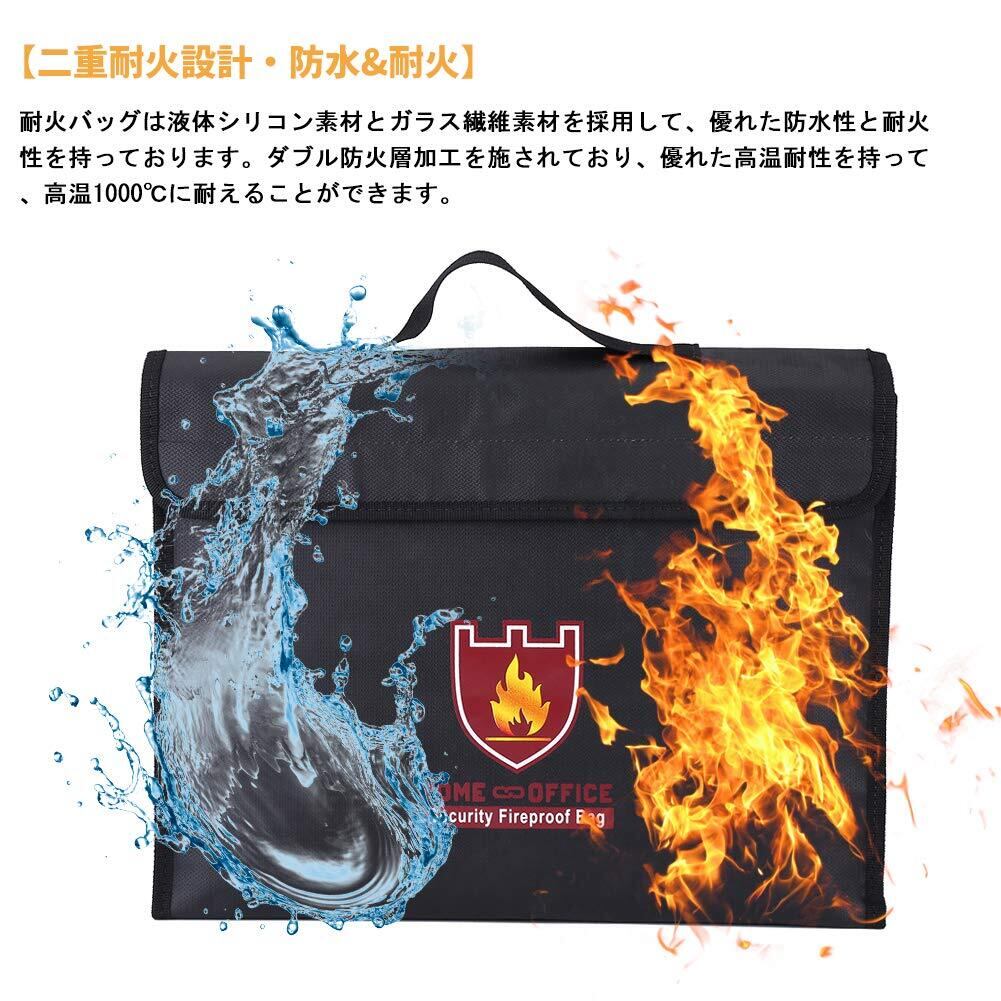 【防水&耐火・貴重物保管】耐火バッグは優れた防水性と耐火性を持ち、貴重な書類、論文、パスポートまたはバッテリー、ノートパソコンなどを保管するのに用いられるのは効果的です。