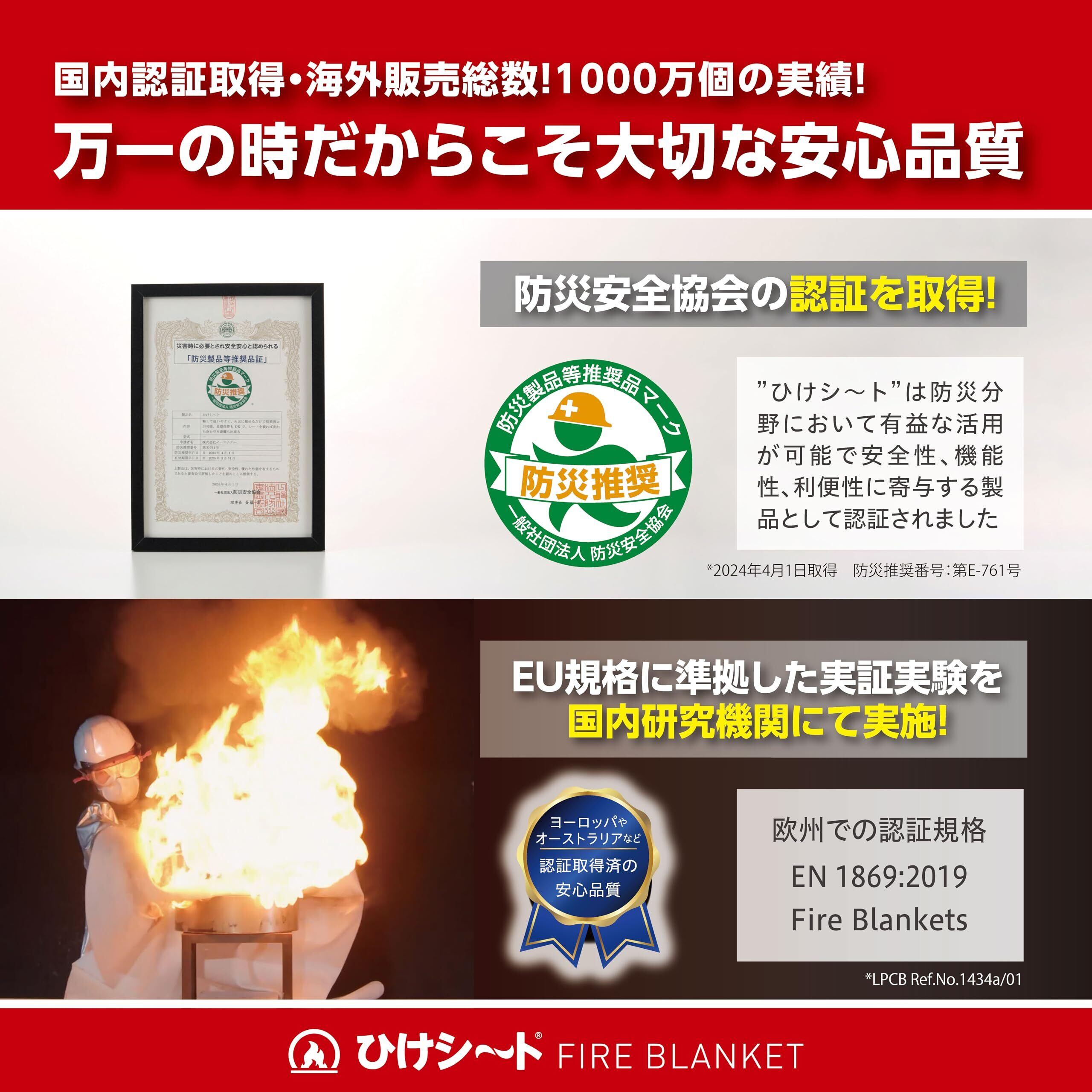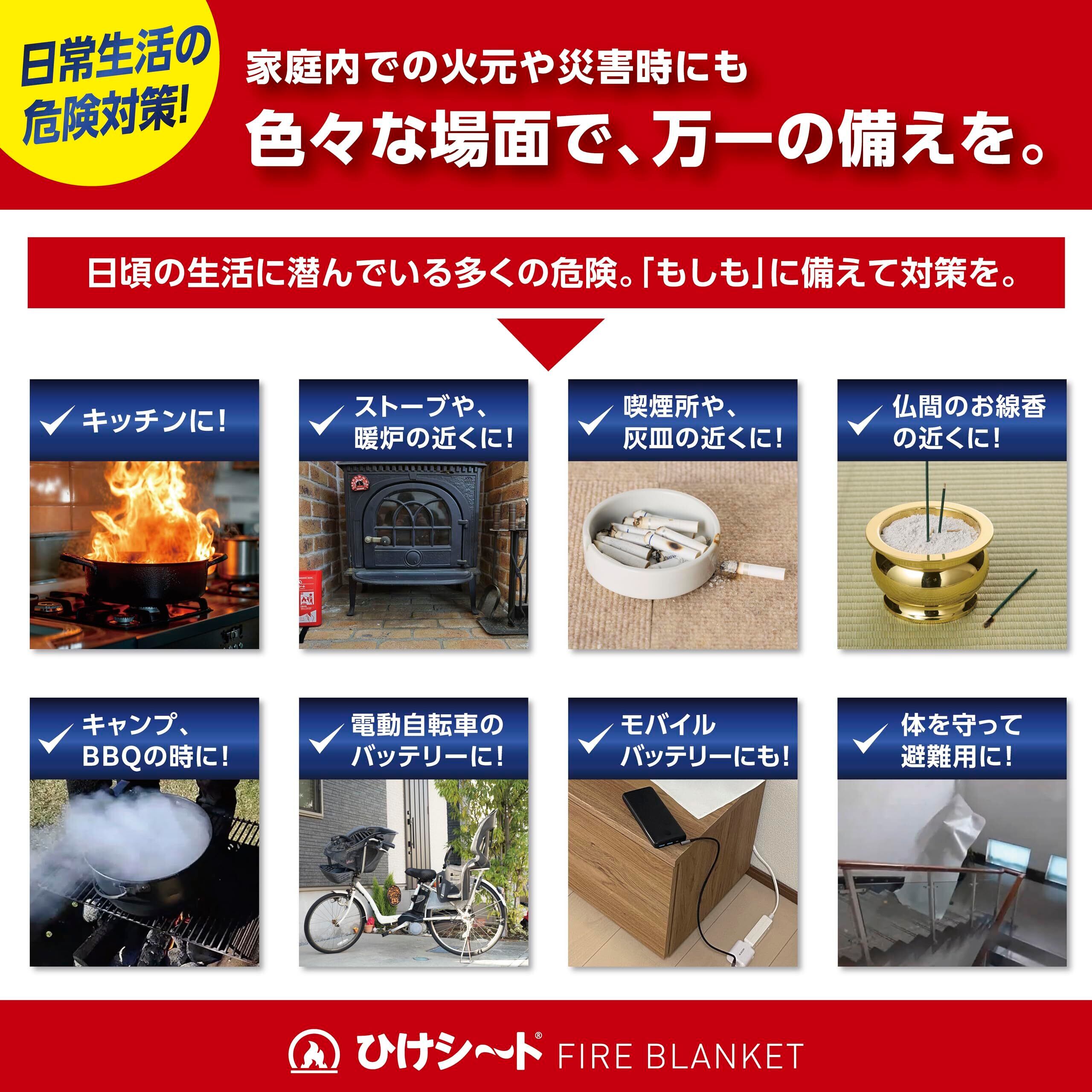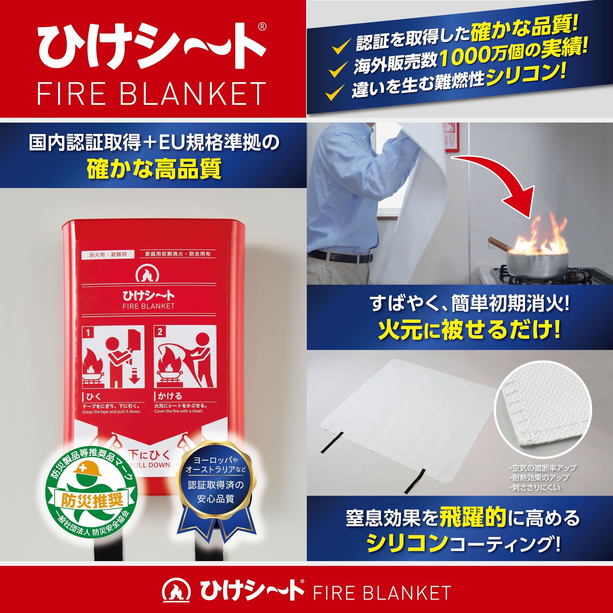 火元に被せるだけで初期消火が行える防炎用シートです。厳格なEU規格準拠の品質で、国内認証も取得しています。